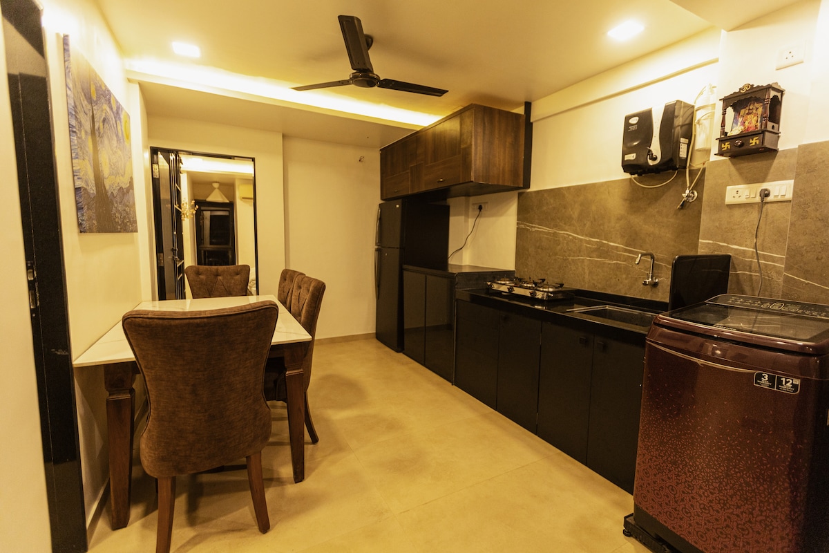 Stylish & Modern Studio in Marol, Andheri East Bright, clean 220 sq ft newly built studio near Airport Road Metro (5 mins / 500 m). Features a comfy king-size bed (5×6 ft), extra mattress, sofa, 2 chairs, new AC, refrigerator, washing machine, small kitchen with basic equipment, TV unit, and modern bathroom. Prime location close to airport, offices, shops & temples. Govt ID & guest photo required. Unmarried couples not allowed. 🚫 Alcohol not permitted..
