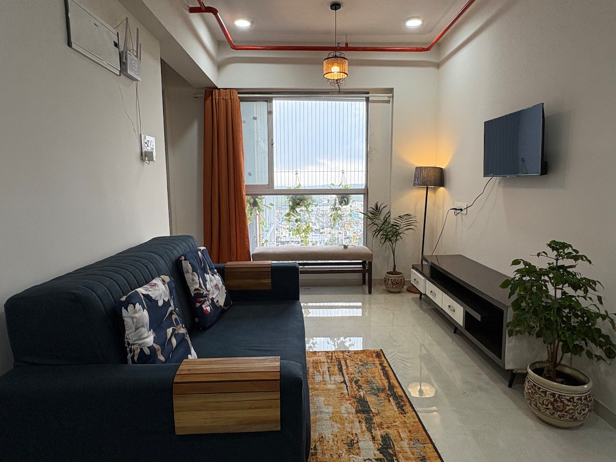 Beautiful 1 bhk apartment with city view & sea view.Purely aesthetic & self designed. Its a 1 Bhk apartment on the top floor with the best view About the apartment Its on higher floor with great view. It has everything you need like AC,Smart TV,Sofa,Kitchen,Gyser,Microwaved and fully equipped kitchen Cafes,Beach,Bar,Restaurant,Market all at walking distance Hardly 30mins away from Airport This is your place where you would love to live and gonna be special.