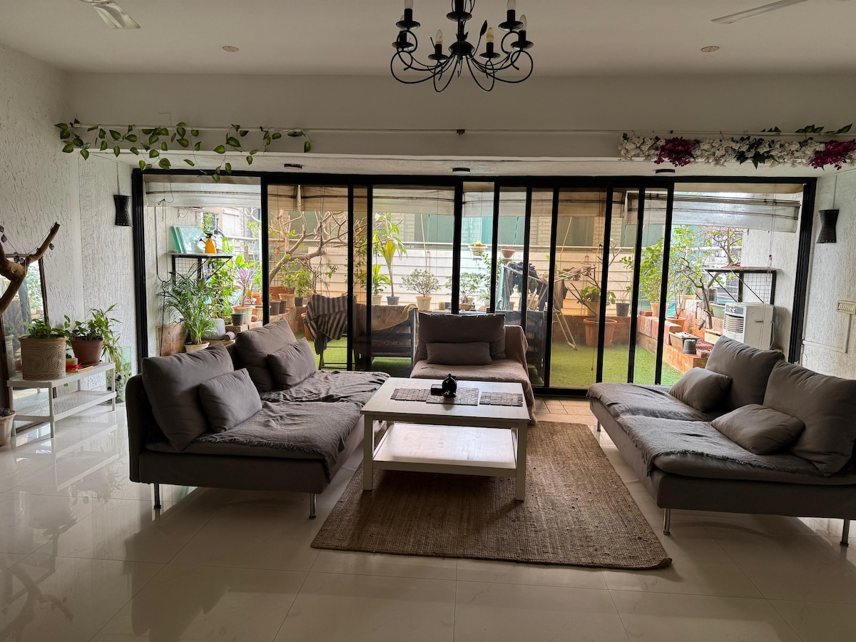Welcome to Rahul’s Retreat – a spacious 2BHK in Oshiwara, Andheri, just minutes from Shakey Wakey. This 1000 sq. ft. apartment features a private terrace, relaxing Jacuzzi, cozy interiors, and all essentials for a comfortable stay. Enjoy self check-in via lockbox, high-speed Wi-Fi, RO water, washing machine, elevator, and 24/7 security. Ideal for business travelers, couples, or families looking for a peaceful Mumbai stay.