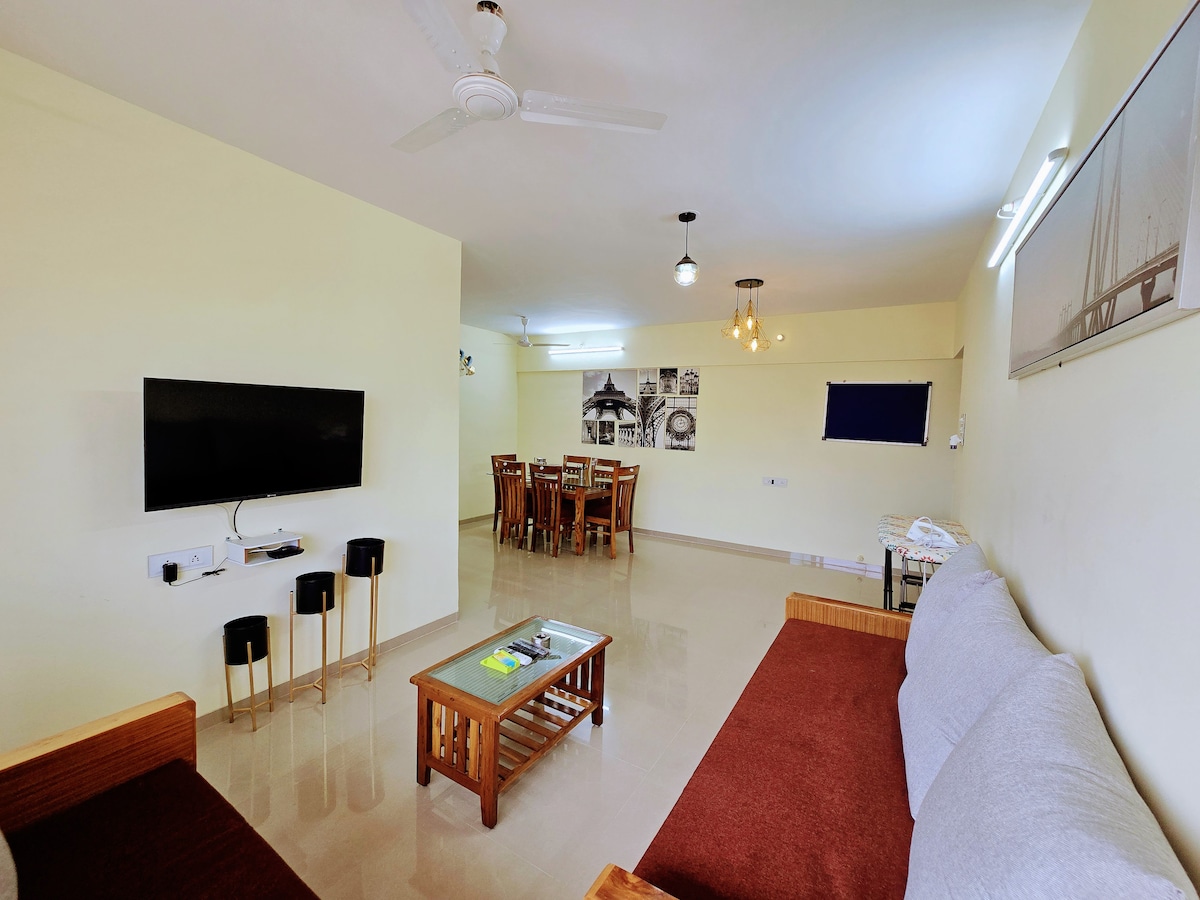 Stay in luxury at our fully furnished 1BHK apartment, offering a cozy bedroom, two bathrooms (one attached bedroom, one common ), and a fully functional kitchen with appliances and basic cooking utensils. Relax in the spacious living room with a big smart TV and elegant interior design. Enjoy high-end furnishings that create a home away from home. Perfect for both short and long stays, this apartment promises comfort and convenience in a prime city location. Book now for an exceptional stay!