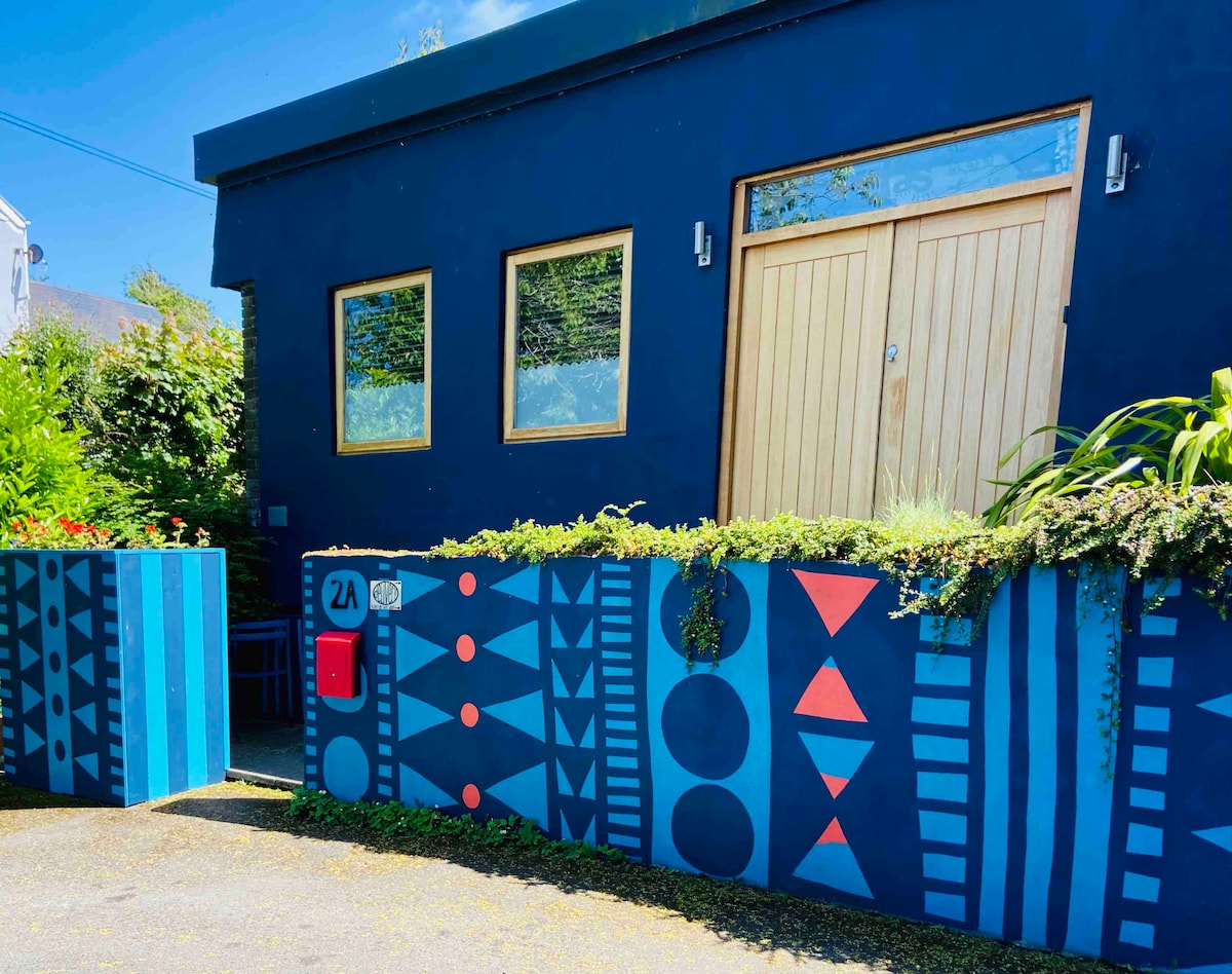 Our Airbnb is a colourful, cosy and creative completely private space attached to our mid century bungalow. It has its own entrance, mini kitchen, double bedroom and en-suite shower room We are in a quiet yet convenient and walkable location for the beaches, coast path, Castle, shops, restaurants & bars in the village of Mumbles. There is free private parking directly outside the house and we are within a 10 min walk of Mumbles village in one direction and the beaches in the other direction.