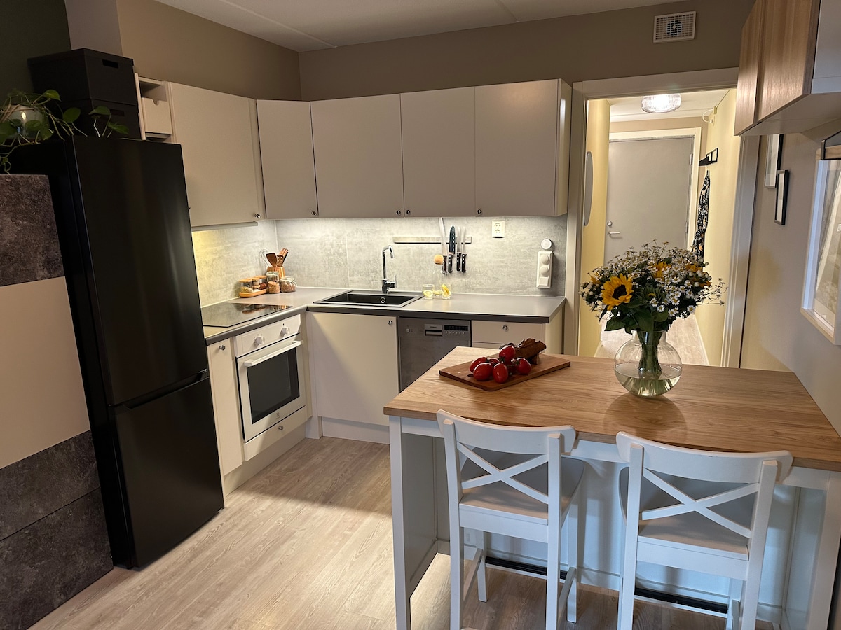 Welcome to your home away from home - a bright and cozy apartment located in the heart of Oslo! Just steps away from Oslo Bus Terminal and the Airport train. This space is ideal for couples, small families, or friends. It features one comfortable bedroom and a quality sleeping couch in the living room - perfect for up to 4 guests. You’ll be within 5 to 10 minute walk from top attractions like the Oslo Opera House, Bjørvika, Barcode, Munch Museum, and shopping and dining spots.