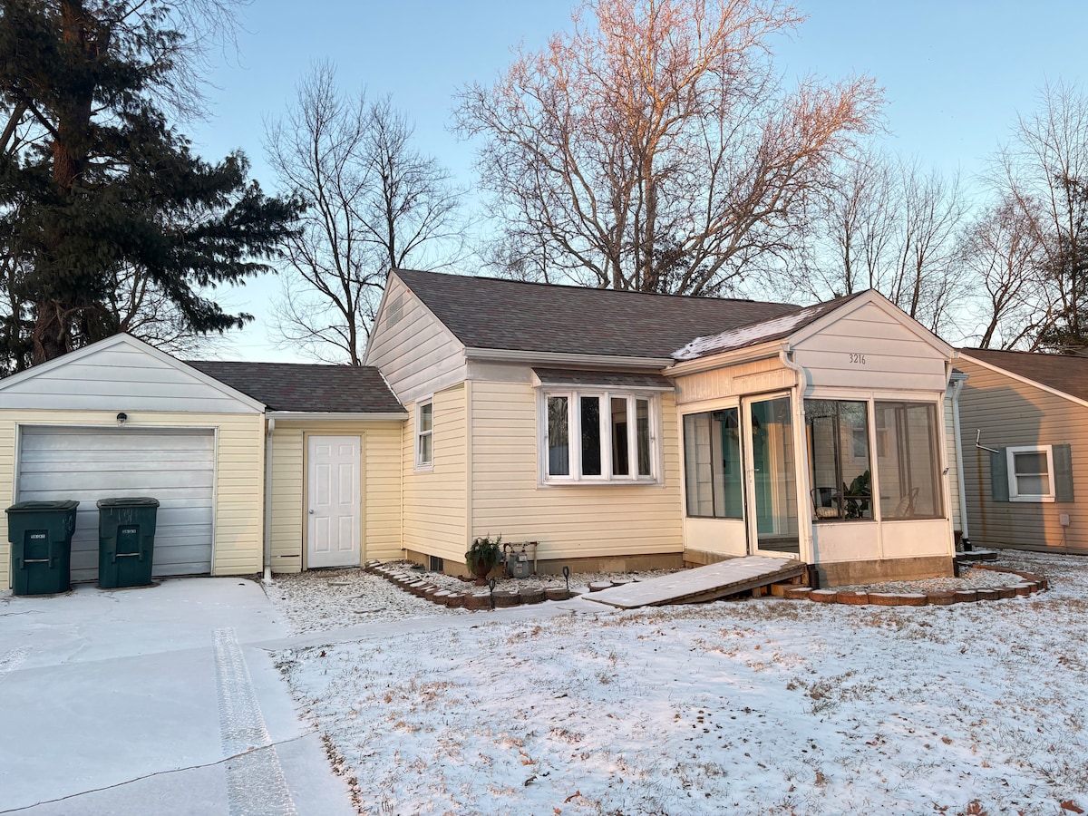 This lovely little retreat will not disappoint. I think you will find it to be a relaxing and comfortable place to spend your time in Muncie. We've provided the basics so that it can be your home away from home: fully functioning kitchen, coffee options, hi speed internet, towels, shampoo, conditioner, soaps, bedding, xfinity flex with tv, and board games. 1/2 mile to shops & dining or a walk along the river, 1 mile to BSU. Close the day grilling out while you watch the gorgeous sunset.