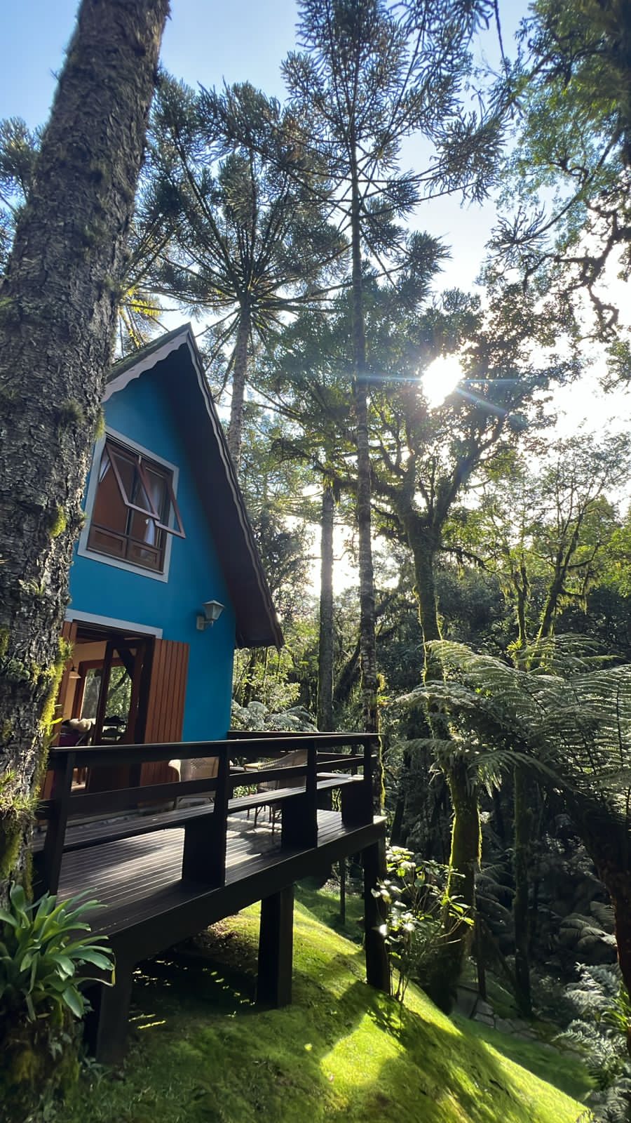 Bem próxima de uma mata , a poucos metros de um arroio e com vista para a cascata, possui uma confortável sala para dois ambientes, com lareira, mesa para 4 pessoas, cozinha equipada e banheiro com hidro . No mezanino , uma suíte muito aconchegante com TV, ar-condicionado e um cantinho planejado para escritório. Um lindo deck compõe o cenário que nos abraça e nos convida a contemplar as exuberantes araucárias e a fauna da região. Acesso por trilha de pedra a poucos metros da rua principal .