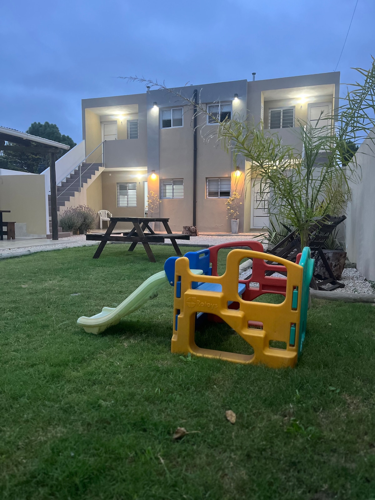 Nuestro complejo cuenta con 2 departamentos independientes ideal para familias, amigos con una capacidad total de 6/7 personas donde podrán tener la intimidad de cada uno pero a su vez compartir los espacios en común como son la piscina (climatizada), el quincho y el espacio verde. Cada dpto cuenta con 1 cama matrimonial y 1 sillón cama El complejo se encuentra en la zona residencial paseo del bosque, a 200 metros de su centro comercial y a 500 mts de las playas más tranquilas de Santa Teresita