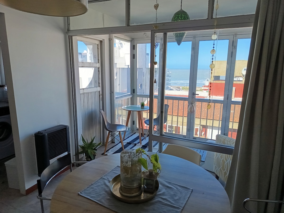 Monoambiente c/ division muy completo en la mejor zona de Mar de Ajó, frente al mar y a 100m del centro comercial. Balcón con vista al mar, totalmente equipado para una familia de hasta 4 integrantes Una cama de 2 plazas y una cama nido. Cocina con lavadero (Heladera c/ freezer, microondas, pava eléctrica, tostadora, exprimidor, vajilla completa y cocina/horno a gas natural) WiFi, Tv led 42" con DIRECTV, DVD y Minicomponente. Baño completo. Reposeras, sombrilla y juegos de playa.
