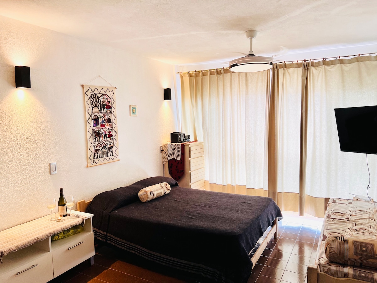 Monoambiente en entorno familiar cálido y cómodo para 4 personas. Ubicado en planta baja, a 5 cuadras del mar y 4 cuadras de la peatonal. Comodidades: Patio compartido con los dueños de la propiedad. Parrilla TV 32" con cable Wifi (100Mbps) Gas natural Heladera con freezer Vajilla Calefacción Termotanque Colchones de alta densidad Ventilador de pie No aceptamos mascotas, ya que los dueños tienen mascotas, éstas no utilizan el patio compartido. No contamos con servicio de blanquería.