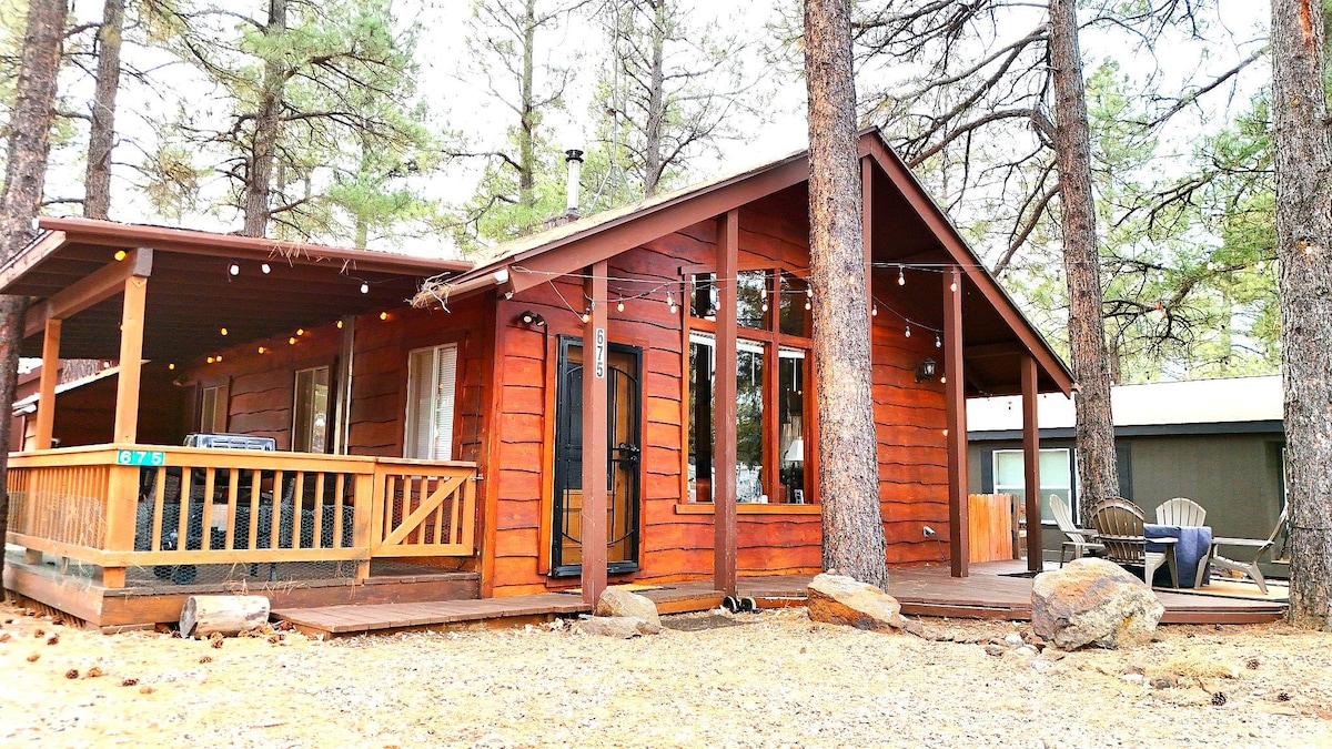 While not technically a treehouse, this log cabin is 79 steps up, sits above ground level and is surrounded by ponderosa pines! Once inside this cozy and peaceful home, you'll feel like you're in your own private treehouse. Located in Kachina Village, just 8 miles south of downtown Flagstaff, you'll get to enjoy dark skies and quiet evenings while being close to all of Flagstaff's attractions. Please note that you DO have to climb all 79 steps and cross a foot bridge over Pumphouse Wash.