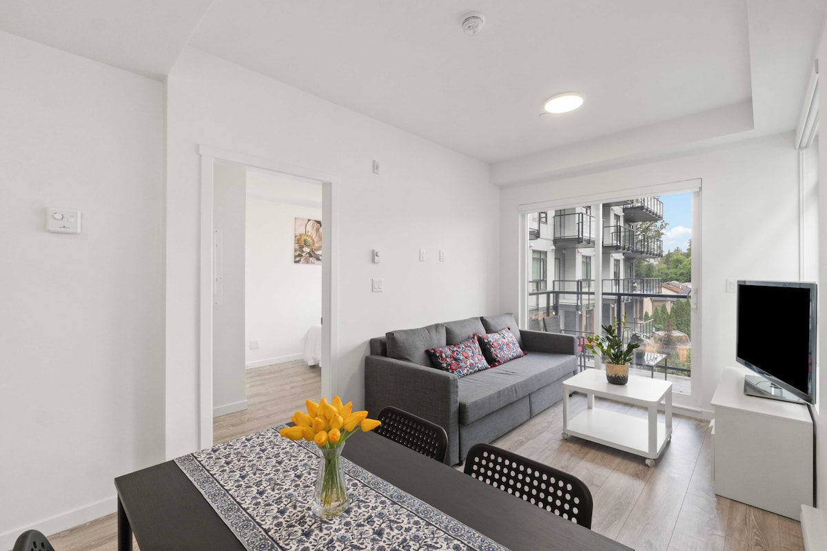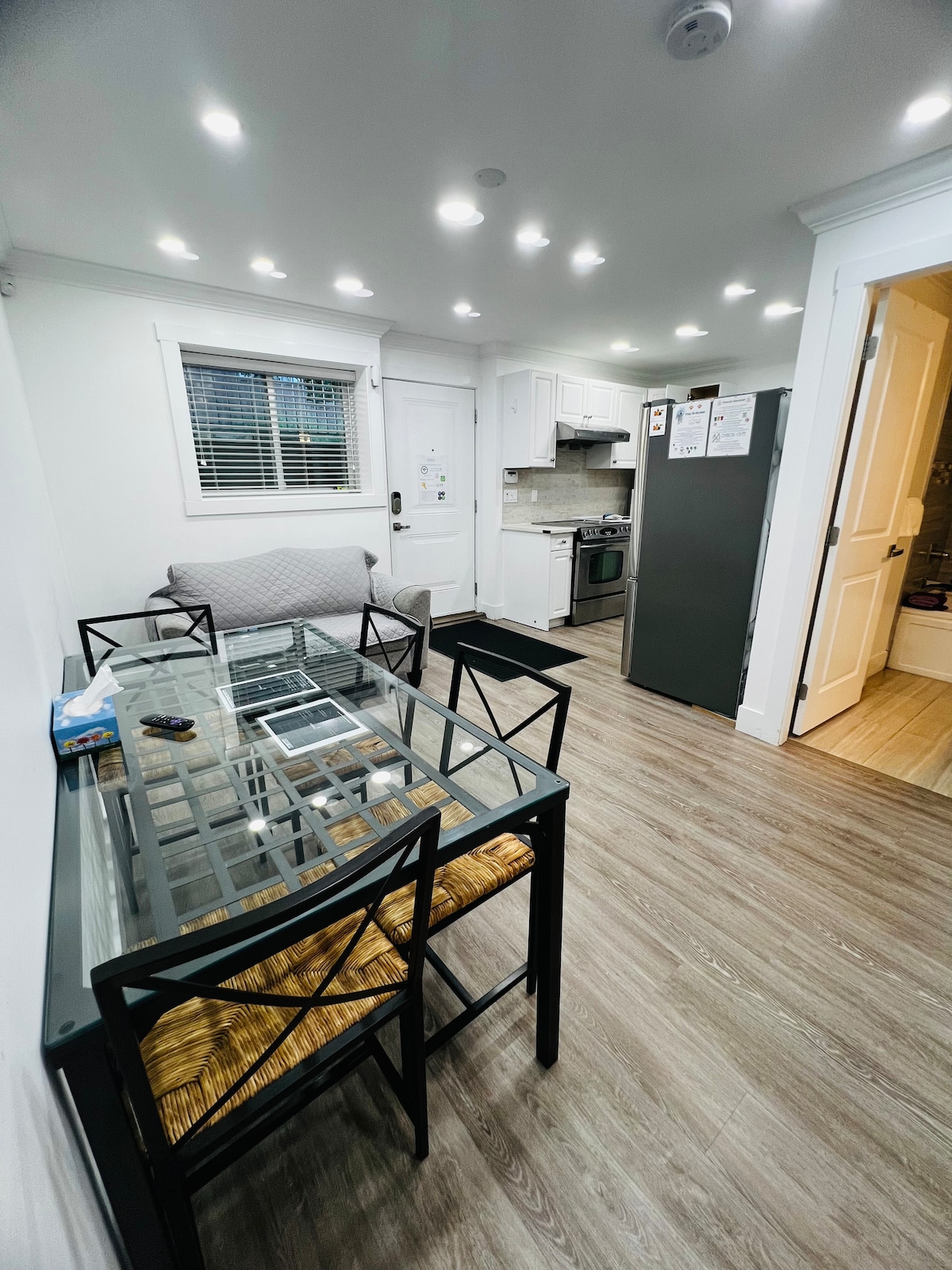 Modern, bright basement studio with queen bed and sofa bed. Fully equipped kitchenette includes cooktop, microwave, kettle, cookware, and flatware. Private bathroom with large walk-in shower and in-suite washer/dryer. Located in a quiet neighborhood near SFU—easy access by foot, transit, or car. Just 30 mins to Downtown Vancouver by car, or 45–60 mins by transit. Clean, comfortable, and stocked with all necessities. Note: We love pets but we DO NOT allow cats.