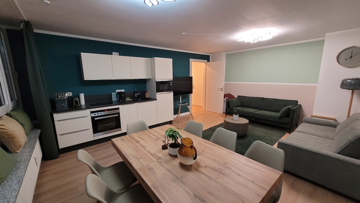 Willkommen in einem modernen Design-Apartment direkt an der Theresienwiese. Auf 50 m² erwartet dich ein stilvoll möbliertes Studio mit Balkon, 75-Zoll-TV, voll ausgestatteter Küche, Bad mit Regendusche, Fußbodenheizung und Highspeed-WLAN – ideal für zwei Personen. Supermärkte, Cafés, Restaurants und die U-Bahn liegen direkt ums Eck. Optional buchbar: Tiefgaragenplatz. Nichtraucher, keine Haustiere.