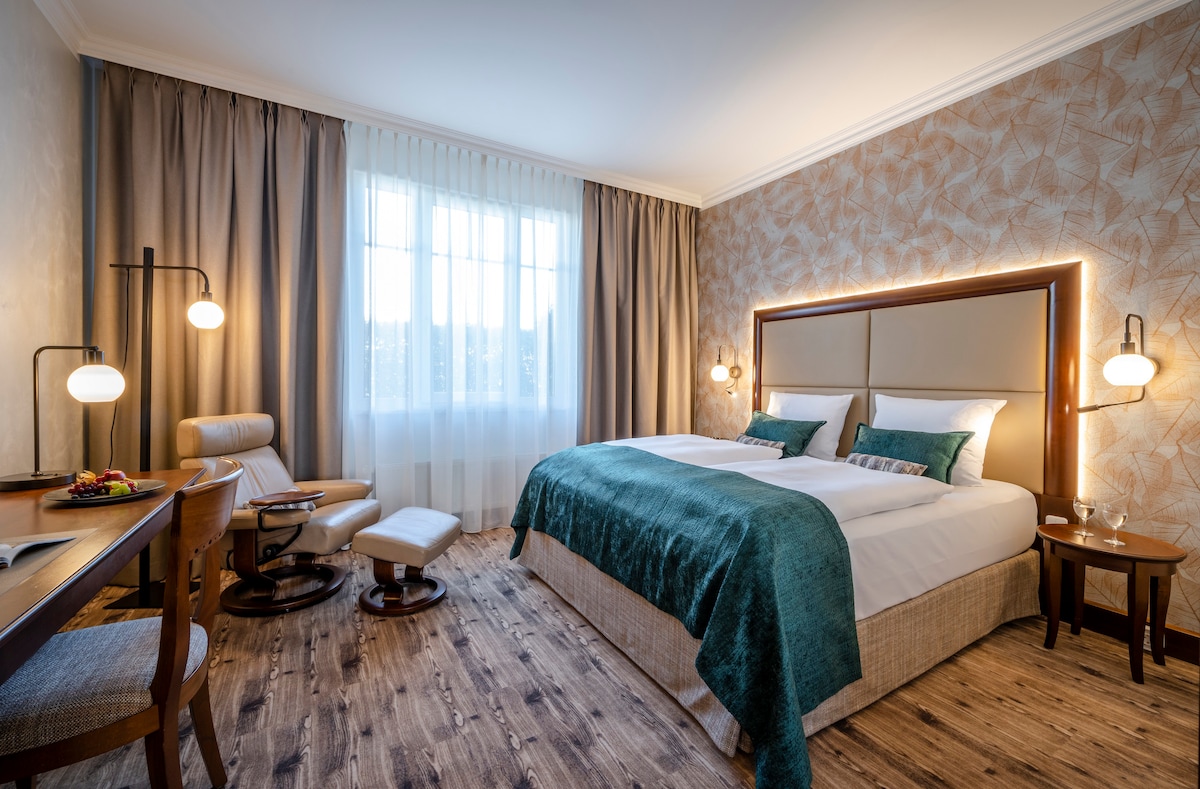 Das kleine Doppelzimmer im La Mansion Vi Vadi Hotel ist mit einem traumhaften TRECA Luxusbett ausgestattet. Der Eichenfußboden und die Fußbodenheizung sorgen für eine besondere Wohlfühlatmosphäre. Zur weiteren Ausstattung gehören unter anderem ein Schreibtisch und ein Schrank mit Safe. Die Rezeption hat 24 Stunden geöffnet. Schnelles W-LAN ist inklusive. Frühstück wird gegen Aufpreis angeboten. Parkplätze sind in der Hotel-Tiefgarage verfügbar.