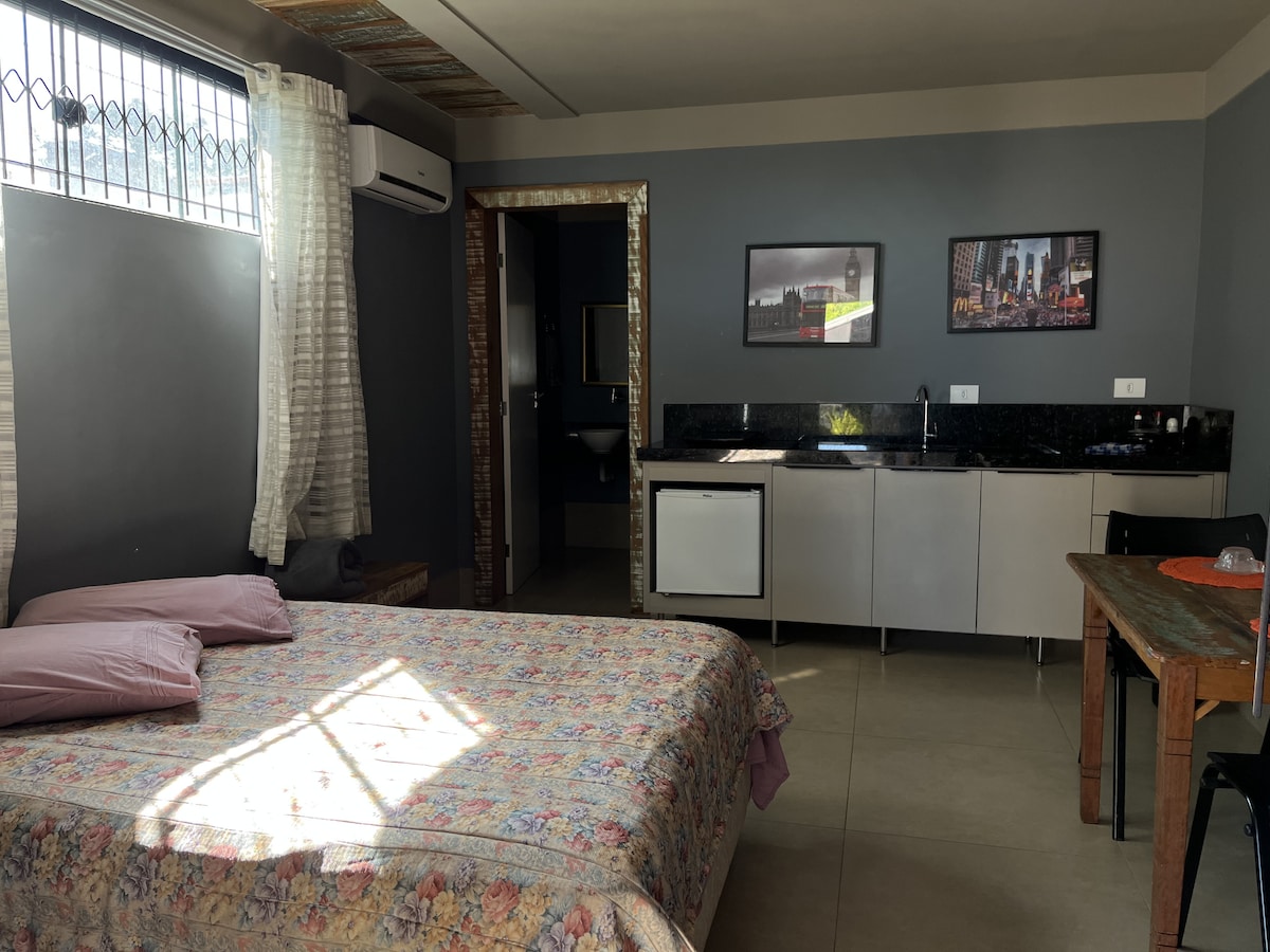 Espaço especialmente preparado para você se sentir acolhido e descansar . Pensamos em cada detalhe para seu conforto Quarto com duas camas de casal muito confortáveis Ambiente climatizado ar condicionado (quente e frio) Cozinha completa com fogão e cafeteira TV smart Wi-Fi de 500mb Máquina de lavar Com entrada privativa. Localização privilegiada! 📍A poucos metros da saída para a BR 467 📍600 mt do Shopping Catuai 📍2 km do Centro 📍próximo a supermercados e Panificadoras