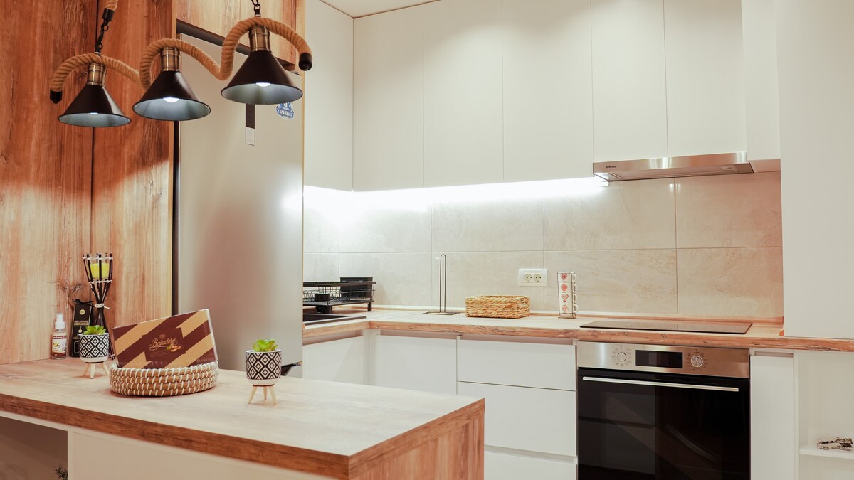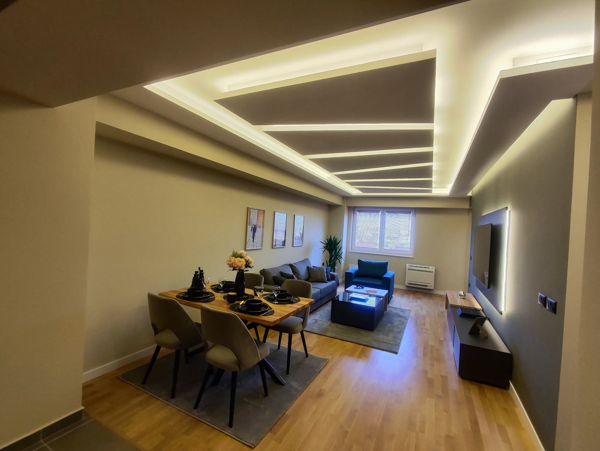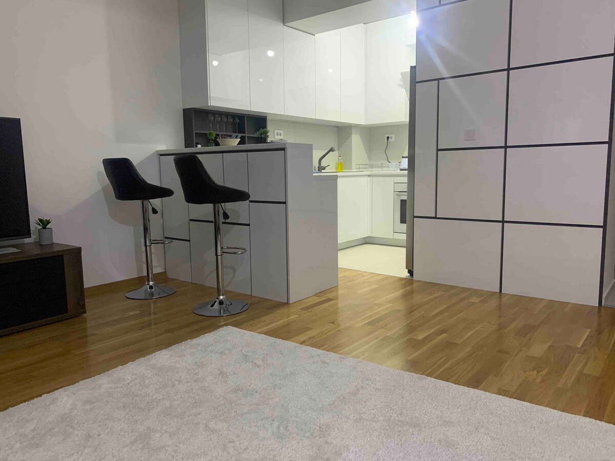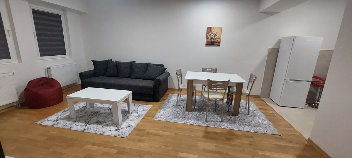New apartment in a new building, completely furnished with private parking, ac and high speed internet 100 mbs, quiet place for relaxation. Close to retail shopping center GODI (500 meters), restaurants, grocceries and cafeterias, Lisa shopping center, Double Tree by Hilton, Vardar river with jogging trail, close to highway that goes direstly to airport. The apartment 1,6 miles from downtown of Skopje, 15 minutes by car, and 1 mile from the biggiest East Gate Mall.