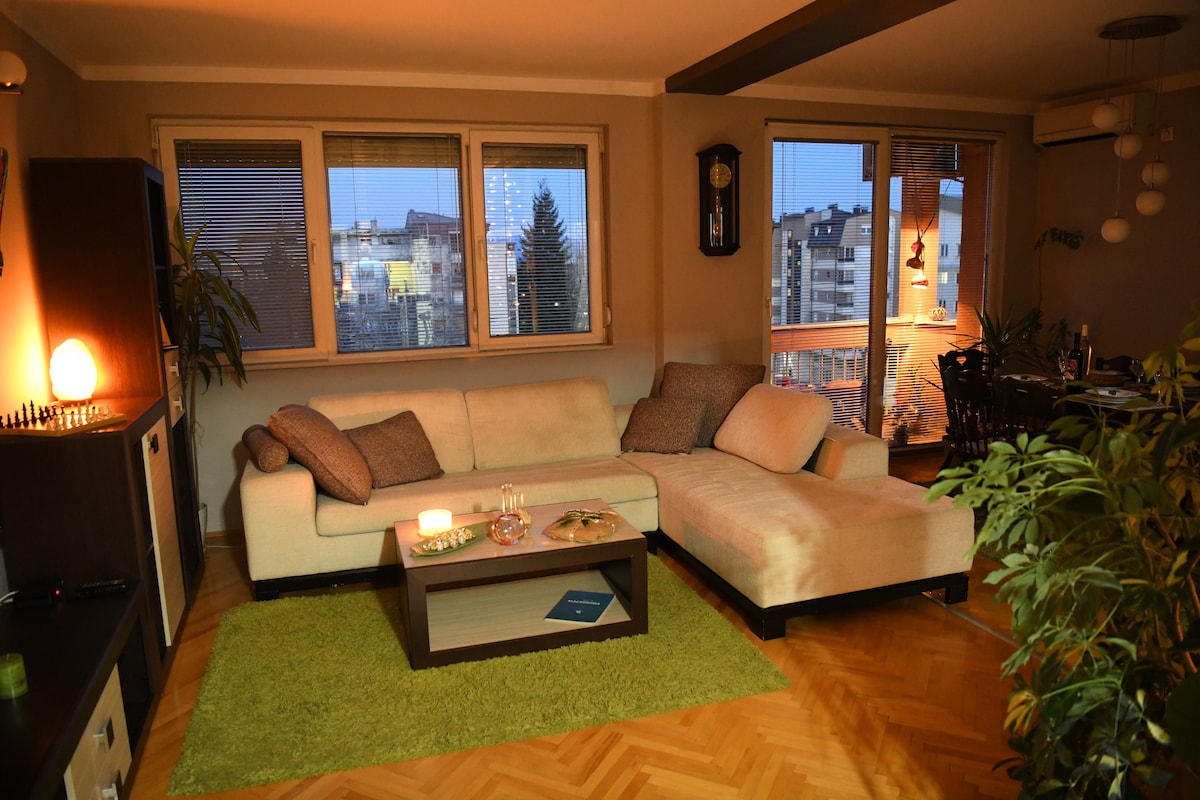 New cozy apartment in modern style with new equipment in the very center of the town, yet away from the crowd on the main pedestrian street. Very bright with windows on all four sides and big balcony on the south- southwest side with great view of Pelister National park. Free parking in front of the house. Accommodation for up to 4 persons. You will share the apartment only with the people you are traveling with.