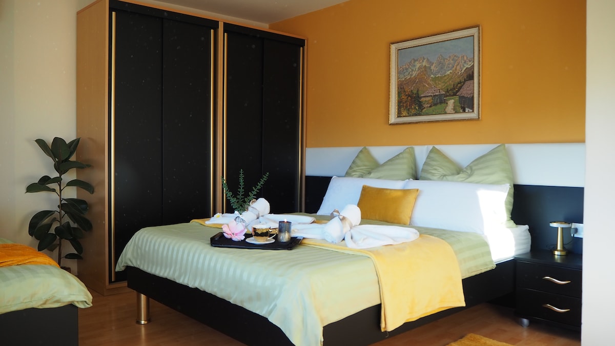 Located within a 10 min walk from the town center and Lake Bled apartments Nija are the perfect accommodation for guests seeking elegantly furnished lodgings, serenity of a residential neighborhood and picturesque views of nearby mountains. In addition to the stylish apartment, guests are welcomed to enjoy the comforts of a shady wooden patio and the richness of homegrown vegetables straight from the garden. While parents rest and relax in the garden, their children can safely play nearby.