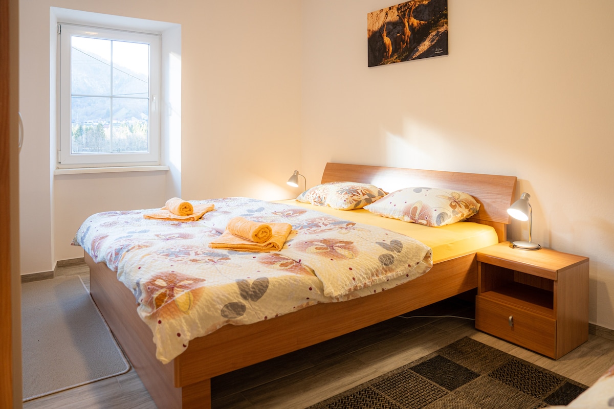 Apartment Petra located in a traditional house for this region is set in the Soča village. An idyllic village that offers many natural sights, memorable views, and astonishing greenery. It fits 2-4 persons. Offers one bed (180cm) and a sofa for 2 persons (140cm). There is a fully equipped kitchen with a dishwasher, kettle, oven, and everything one needs for a comfortable holiday. We offer free WiFI and parking. Plus a TV for rainy days! You'll be able to enjoy a 360 view from your own terrace.