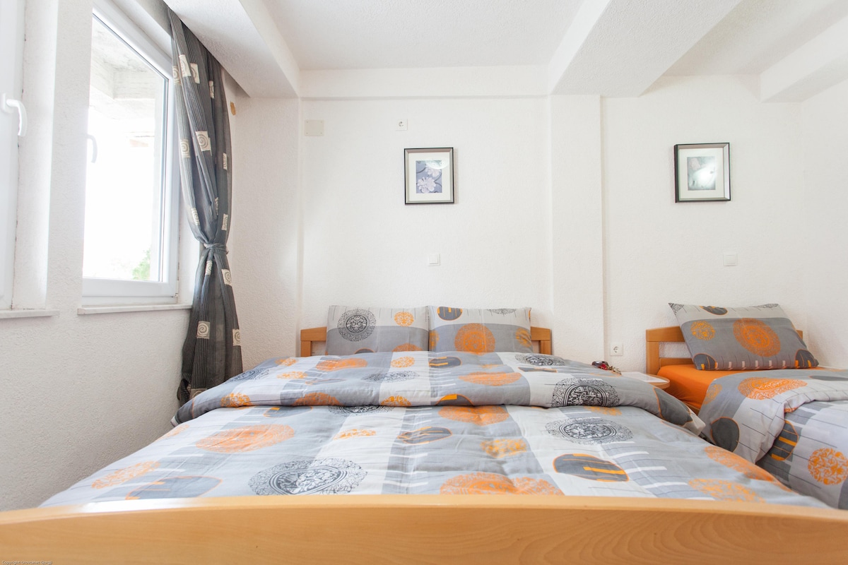 Makach Apartments is a brand new object built in 2019 and located only 30 meters from Lake Ohrid. Situated in the center of Pestani, the apartments offer a view on the lake, a yard with sitting area and, private parking. The deluxe apartment features a spacious living room, kitchen and dining area, one bathroom, and two bedrooms spread over 100 m2.