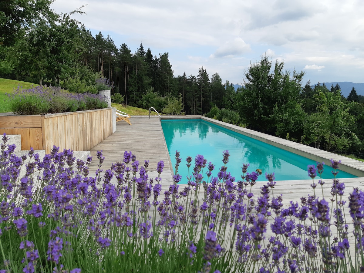 Apartment Bitter offers you a private wellness place for relaxing and enjoying your time - no matter if you want to escape just for one day or need a complete week off. Modern arrange living area with king size bed, fully equipped kitchen, dining table and a sofa next to the warming fire place. Calm down your private sauna and hot tube in the cold winter days. And if you like to be outside you can go for a swim in the nearby river as also hiking, cycling or skiing in the Slovenian Alps.