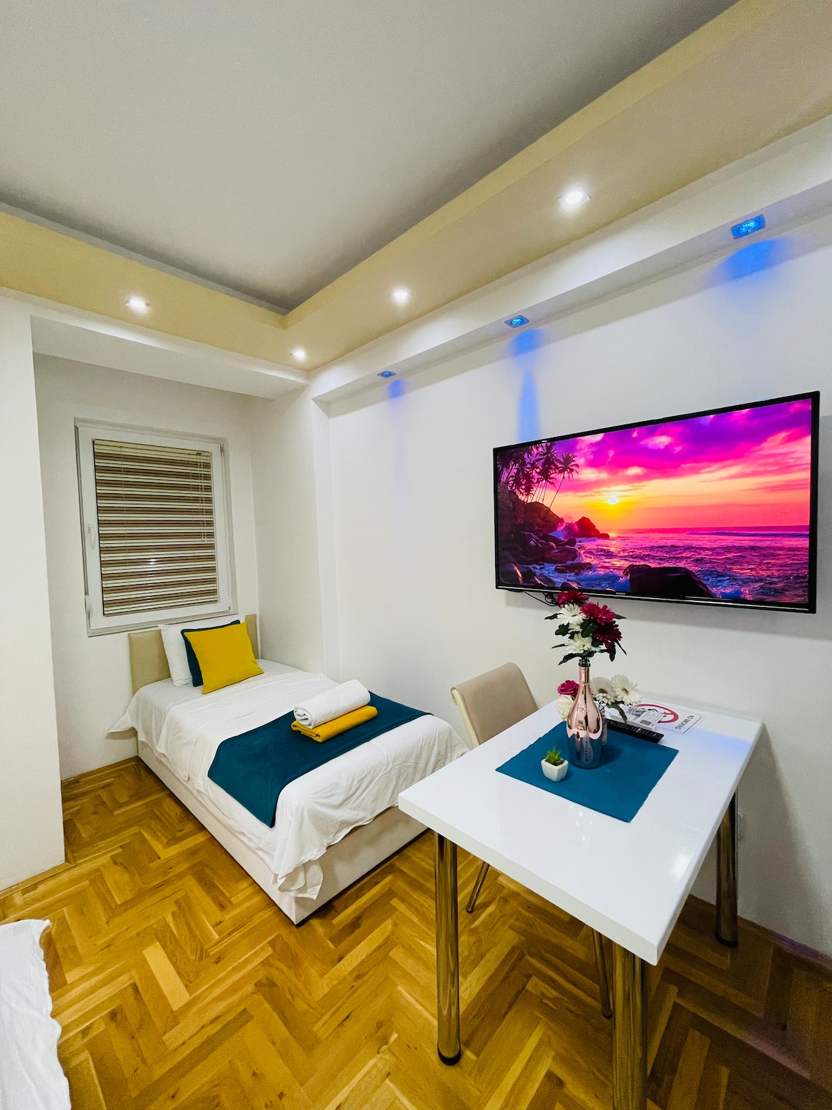 Welcome to this top-modern 2-room apartment - just steps away from the city center and beautiful Lake Drin. Enjoy your staying in stylish interiors, with a bright and open living space equipped with air-conditioning and with a luxurious bathroom. Perfect for couples, business travelers or solo explorers. Enjoy Struga!