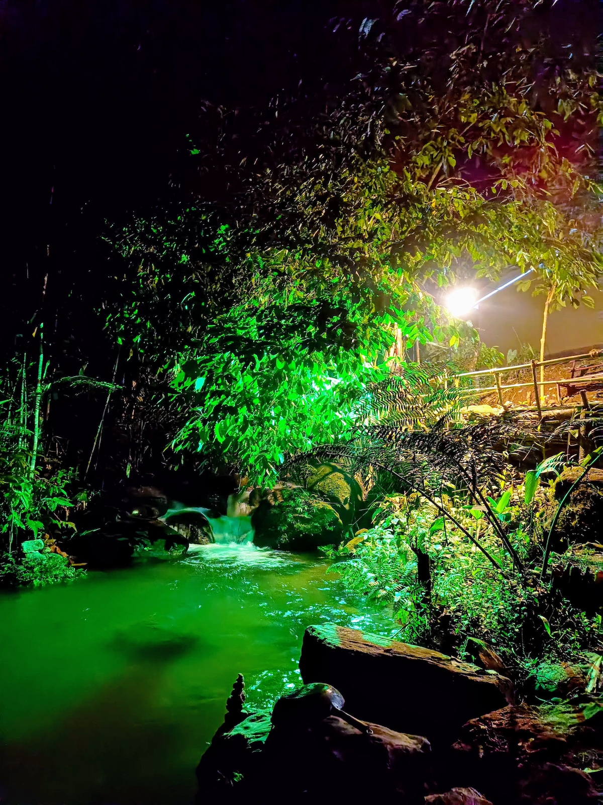 Our property is situated inside a forest on a mountain side within more than 5 acres of land surrounded by waterfalls and valleys. The room can accommodate around 15 members inside and pitch tents if more people are there. The property has a water stream view from its window and will have unrestricted access to the natural pool beside the stay even at night, The whole group will be comfortable in this spacious and unique space. Please contact us before confirming the booking.