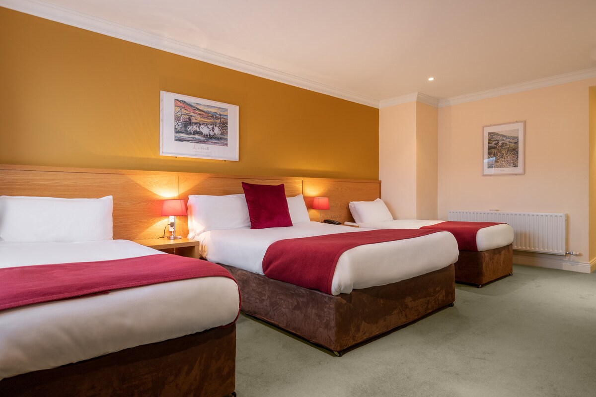 Our Family Rooms at the Bella Vista Hotel are complete with 1 Large King Bed, 1 Large Double Bed, 1 En-Suite Bathroom and stunning views of Cobh and Cork Harbour. These rooms offer an exceptional combination of comfort and style and feature all of the modern amenities you would expect to fulfill your family's stay. Our Family Rooms are suitable for 2 Adults and 2 Children (up to 12 Years Old).