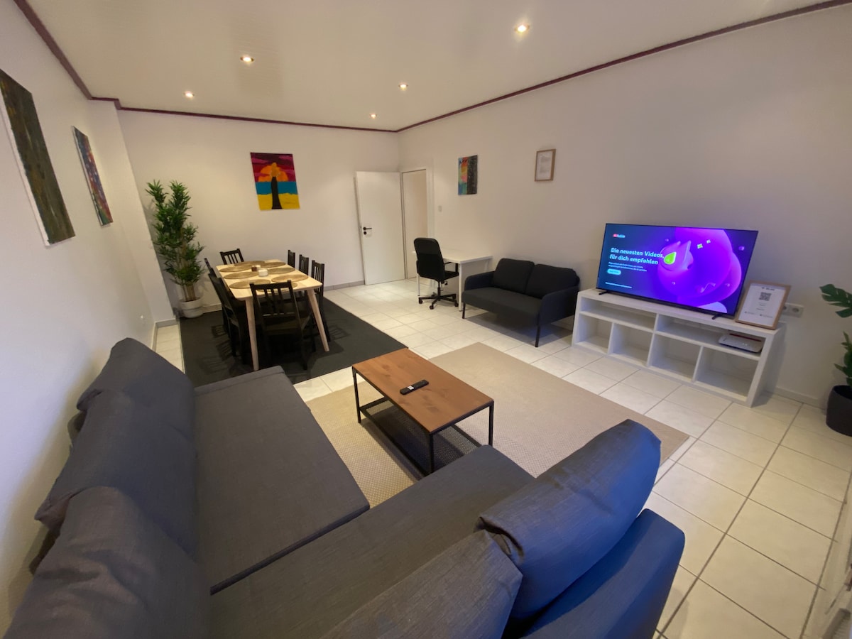 Welcome to our beautiful apartment! -Central location (Shopping center 800 meters, Aldi 900 meters, restaurants 600-900 meters, trade fair 7 km, Zeche Zollverein 5.8 km, city center 5.9 km) -Subway station 500 meters -Comfortable king-size bed -Sofa bed -70-inch Smart TV -Wi-Fi -Fully equipped kitchen -Complimentary coffee and tea products -Bed linens, bath towels, hand towels -Dining area -4 stadiums near the accommodation (Gelsenkirchen 11 km, Düsseldorf 37 km, Dortmund 39 km, Cologne 80 km)
