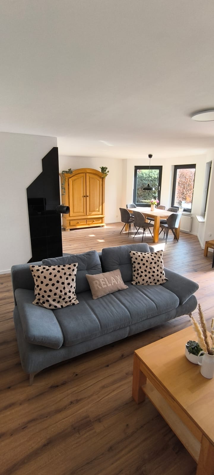 Diese stilvolle Unterkunft eignet sich perfekt für 4 bis 6 Personen. Ein wunderschöner Kaminofen und schicke Theke sowie die große Glasfront mit Blick in den romantischen Innenhof zaubern die einmalige Atmosphäre. 3 Ausgänge zum Garten mit Sitzgelegenheiten ermöglichen es, sommerliches Wetter zu genießen. In anderen Jahreszeiten bringen die Fußboden- und Wandheizung wunderbare Wärme und der Kaminofen begeistert mit seinen lodernden Flammen. Die große exklusive Küche ist bestens ausgestattet.