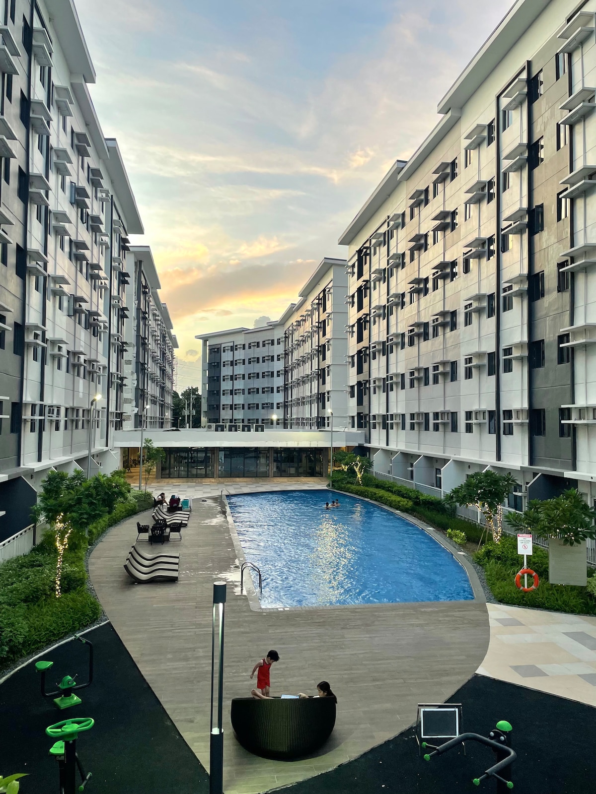 Experience tropical comfort and green space in the city. Stay in a peaceful yet centrally-located place in south Metro (Filinvest City, Alabang, Muntinlupa). Within hotel/mall complex and a short walk to malls, supermarkets, offices, school, and hospitals. Accessible through expressways from Manila airport. Enjoy Monopoly game, PS5 games, Netflix, Youtube, TV channels, or simply use fast 350mbps WIFI. Swimming pool (P600/use) & parking (P300/day) available as addt'l fee (subject to change).