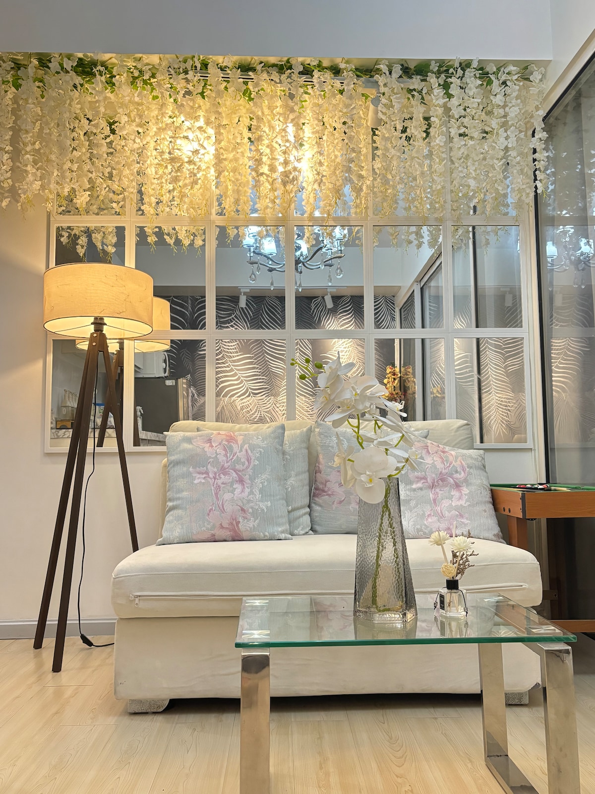 Indulge in resort-like serenity amidst the urban wilderness! Nestled w/in the city, our Airbnb offers a sanctuary reminiscent of a beachside relaxation. Featuring a stylish 2-Br, 1-Ba layout, our space exudes minimalism, ideal for families & friends seeking a holiday or weekend escape. Enjoy the pool w/ simulated waves & the sunrise & sunset view of the city from the balcony. With almost all essentials provided, all that’s left is for you to book & embrace the peace & tranquility awaiting you.