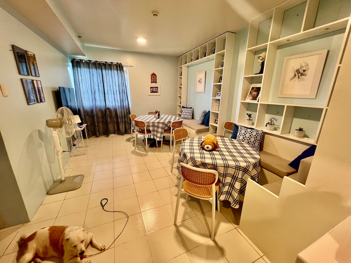 This cosy studio type condo in Muntinlupa City with all the necessary amenities. can sleep up to 4 persons. The queen sized bed can be separated by a sliding door for more privacy. the newly renovated pool is now open Near to the airport and multiple malls.