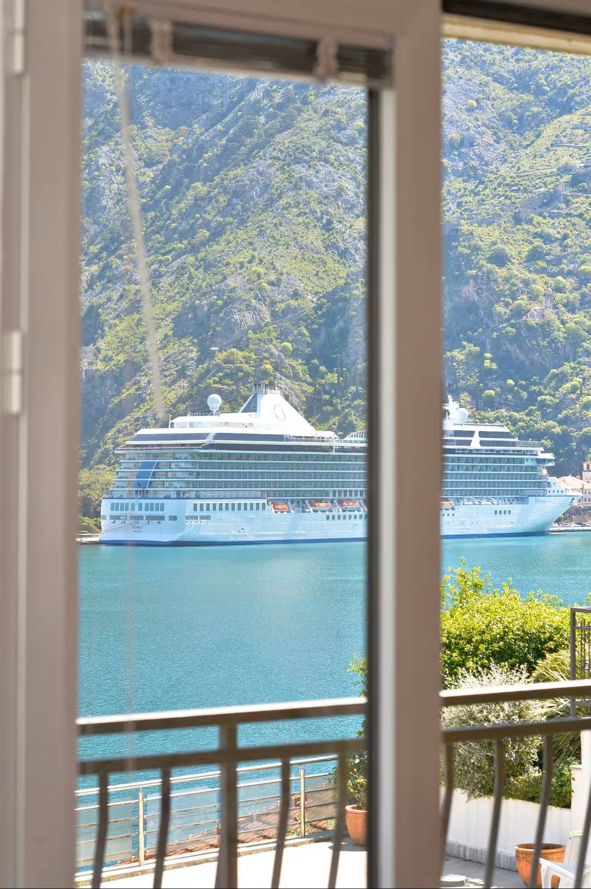 Beautiful panorama view over bay of Kotor, harbor and old town is the first impression you will get from this 53m2 apartment. During the stay you will enjoy in outstanding view of luxury cruse ships during early morning arrival or late afternoon departure from port of Kotor. This is completely new apartment located inside luxury residential complex , apartment is fully equipped with free parking , free wi-fi and fully equipped kitchen. Distance is 500m from the sea and 1.5km from downtown.