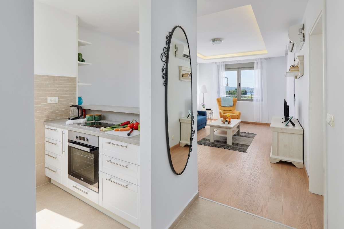 The studio/apartment is located on the first floor of the house and features its own kitchen, bathroom, and private balcony. From the balcony, you can enjoy beautiful views of Boka Bay and the Verige Strait. Guests also have access to the terraces in front of the house, which are arranged on three levels. These terraces offer dining and coffee tables, as well as an outdoor shower — perfect for relaxing and enjoying the fresh sea air.