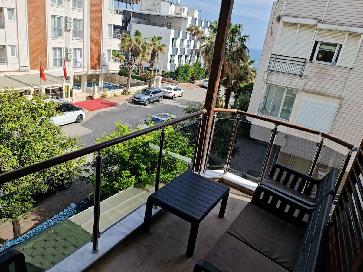 Welcome to our cozy, stylish space! Our prime location puts you near city highlights like Lara Beach and the Waterfall. Enjoy free beach service and also free umbrella and sunbed service. Plus, right below, you'll find Antalya's finest cocktail bar, On Wednesdays, Fridays, and Saturdays, you can enjoy the music with a DJ performance taste unique cocktails until 01:00am and ideal for some unique fun Only 7 km from Antalya Airport, Enjoy the comfort of home!