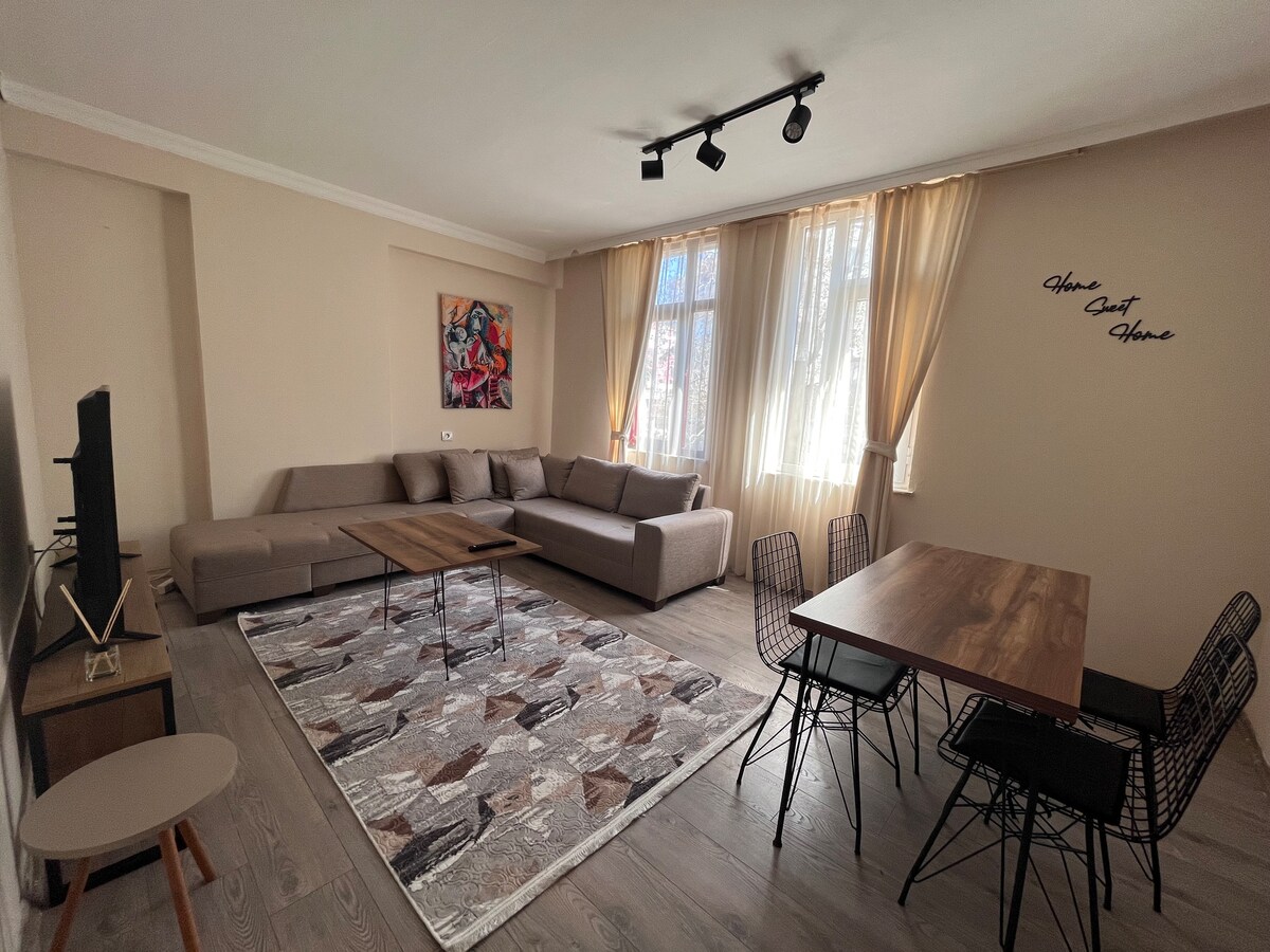 Modern ve konforlu 1+1 dairemiz, doğalgazlı ve klimalı yapısıyla dört mevsim keyifli konaklama sunar. Merkezi konumda yer alan dairemiz; toplu ulaşıma, marketlere ve semt pazarına yürüme mesafesindedir. Yatak odasında bulunan visco yatak ile günün yorgunluğunu rahatça atabilir, ev konforu sağlayan tam donanımlı mutfak ve hızlı internet mevcuttur. Tarihi dokuya sahip Old Town bölgesine sadece 15 dakika yürüme mesafesinde olup, iş veya tatil amaçlı kısa-uzun süreli konaklamalar için idealdir.