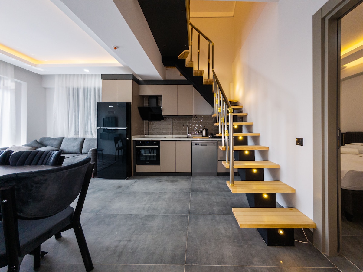 If you stay in this centrally located place,you will be close to everywhere as a family.Very spacious and comfortable loft,well insulated.There are 3 beaches within a 3 minute walk.İnciraltı Beach, Erdal İnönü Park Beach and Mobile Public Beach. There is a private beach within the site located on the roof top.Guests can use this beach free of charge. In the area where the place is located,there are many cafes,restaurants,3 shopping centers,cycling,jogging area and 4 city hotels witihin2-3 km.