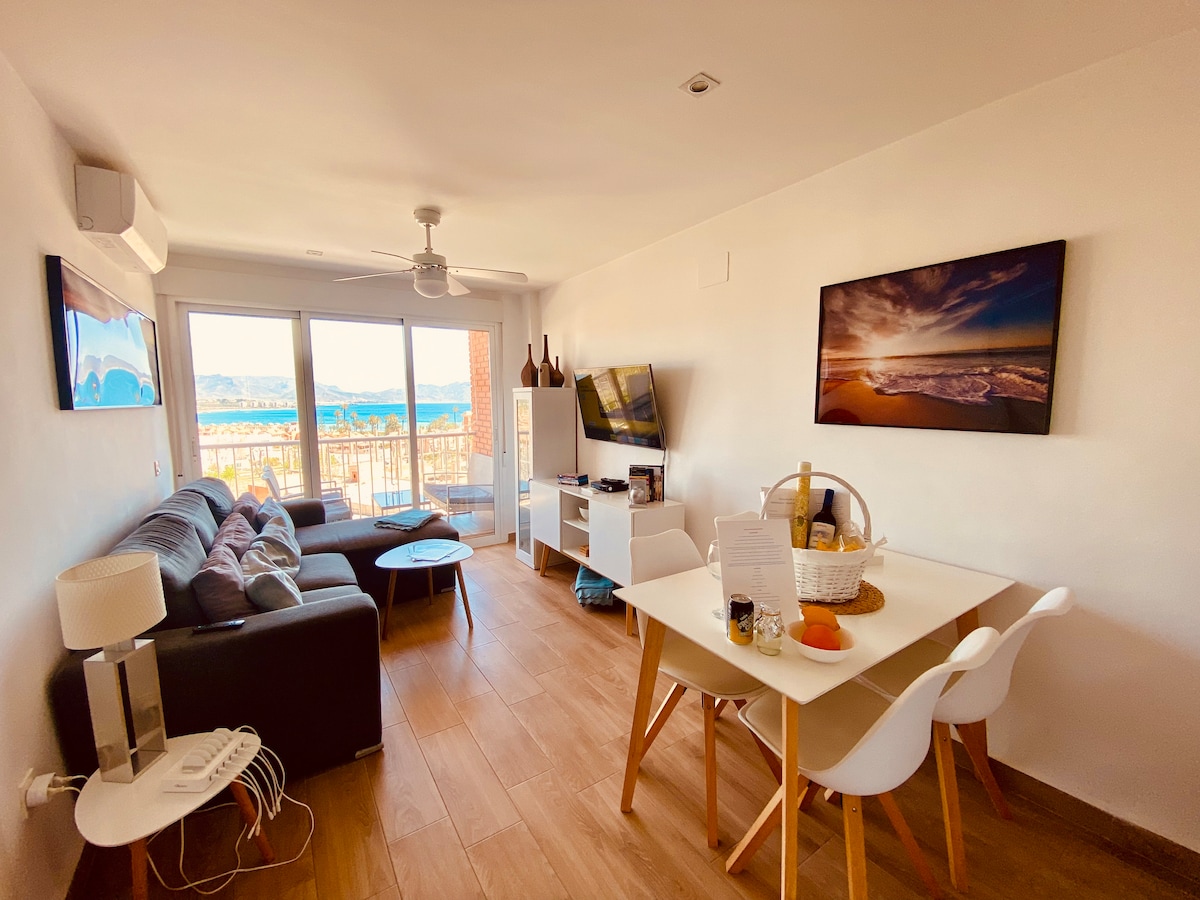 Modern, refurbished, apartment with amazing sea or mountain views from all windows FREE WI-FI, INTERNATIONAL TV, DVD PLAYER & NETFLIX For families and couples only - maximum 4 adults and 2 children over 2 years old AIR CONDITIONING (living area) Less than a 6 minute walk to the blue flag beaches, paseo and restaurants of Puerto de Mazarron Paseo childrens play area, outdoor gym and petanca club Fully equipped modern kitchen FILTERED DRINKING WATER SYSTEM Everything for the beach is supplied