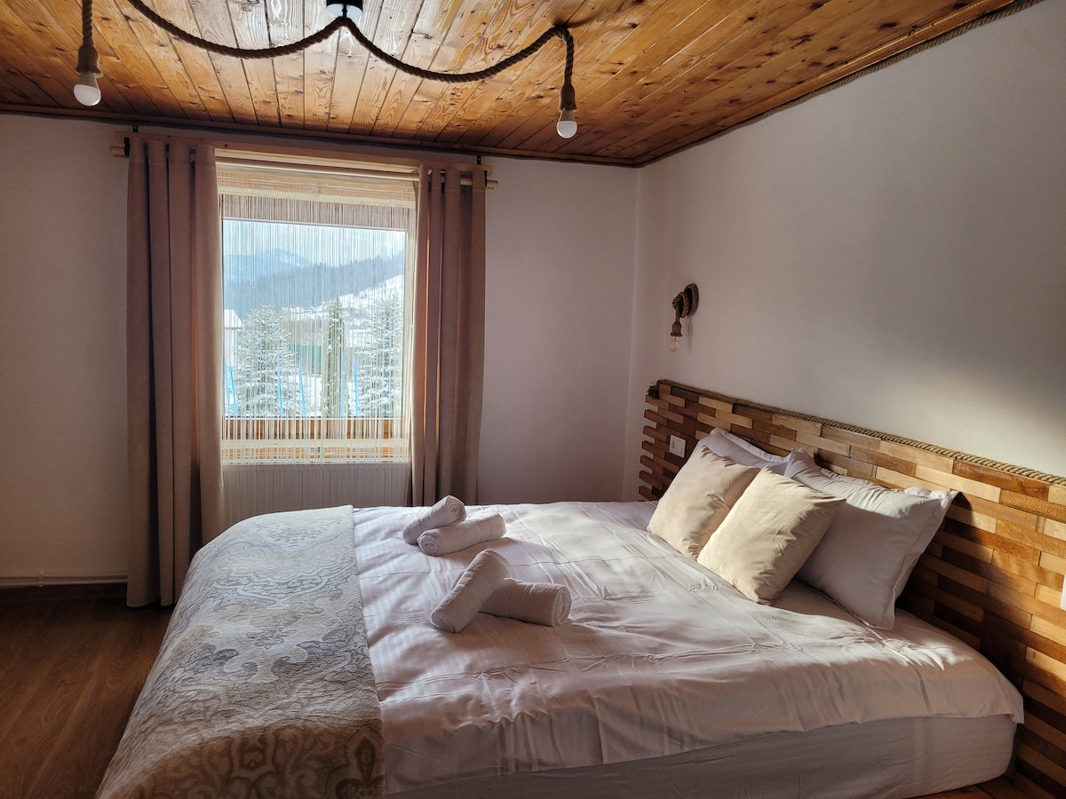 Relax in our modern, cozy A-frame cabin in Sovata, perfect for up to 4 guests. The cabin features 2 bedrooms, a private jacuzzi, TV, fully equipped kitchen, and heating and cooling via heat pumps. Step outside and relax on the terrace, equipped with outdoor furniture and a grill, and enjoy the quiet garden and fresh mountain air.