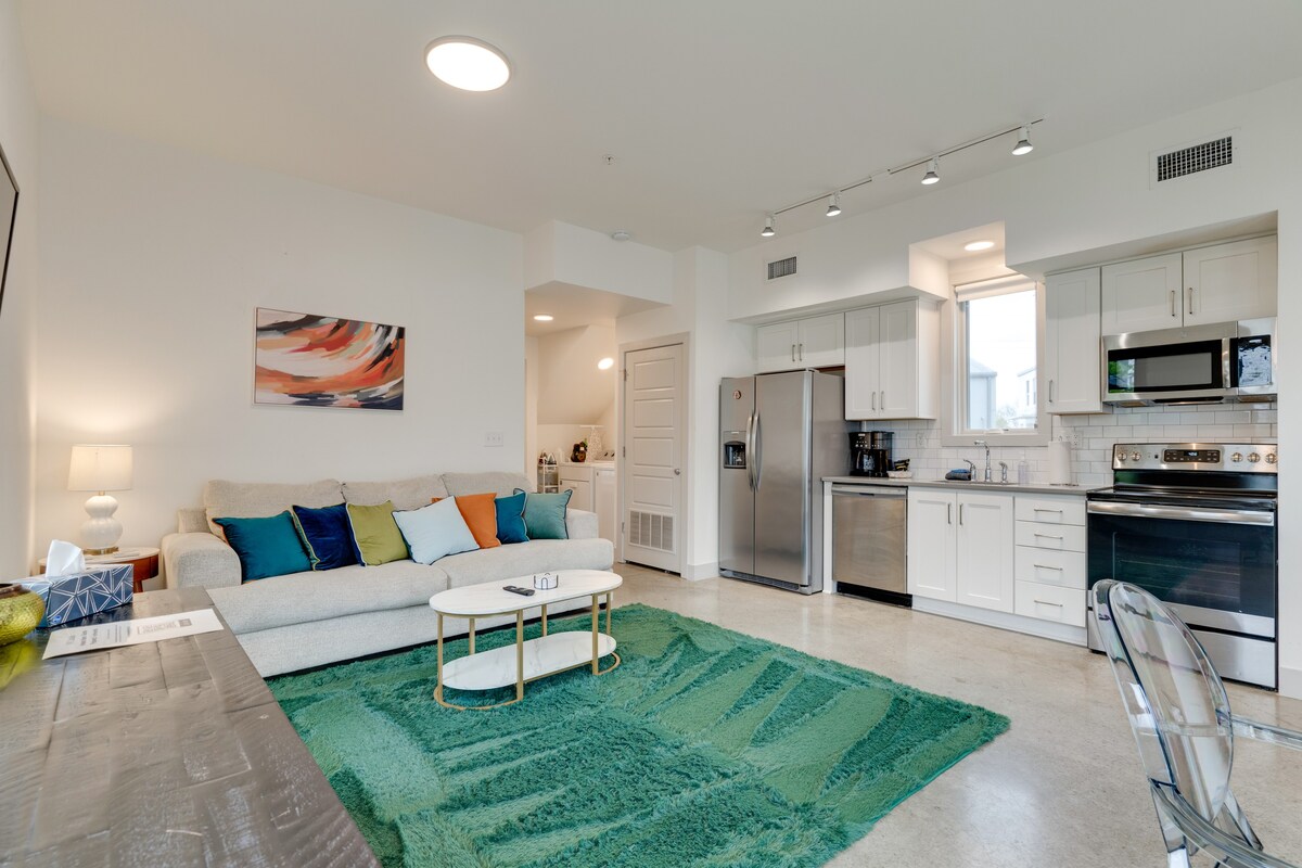 Enjoy a stylish experience at this centrally located condo located 5mi from Broadway. This new condo transformed from old office space has been designed to include modern comforts with a dash of Nashville charm. The home is in a quiet area that is just a 10min drive from downtown Nashville and all of its amazing shops and restaurants. If you plan on arriving in your own vehicle, we have free parking on premises to accommodate you and your guests. STRP # 2/0/2/3/0/0/0/4/0/4