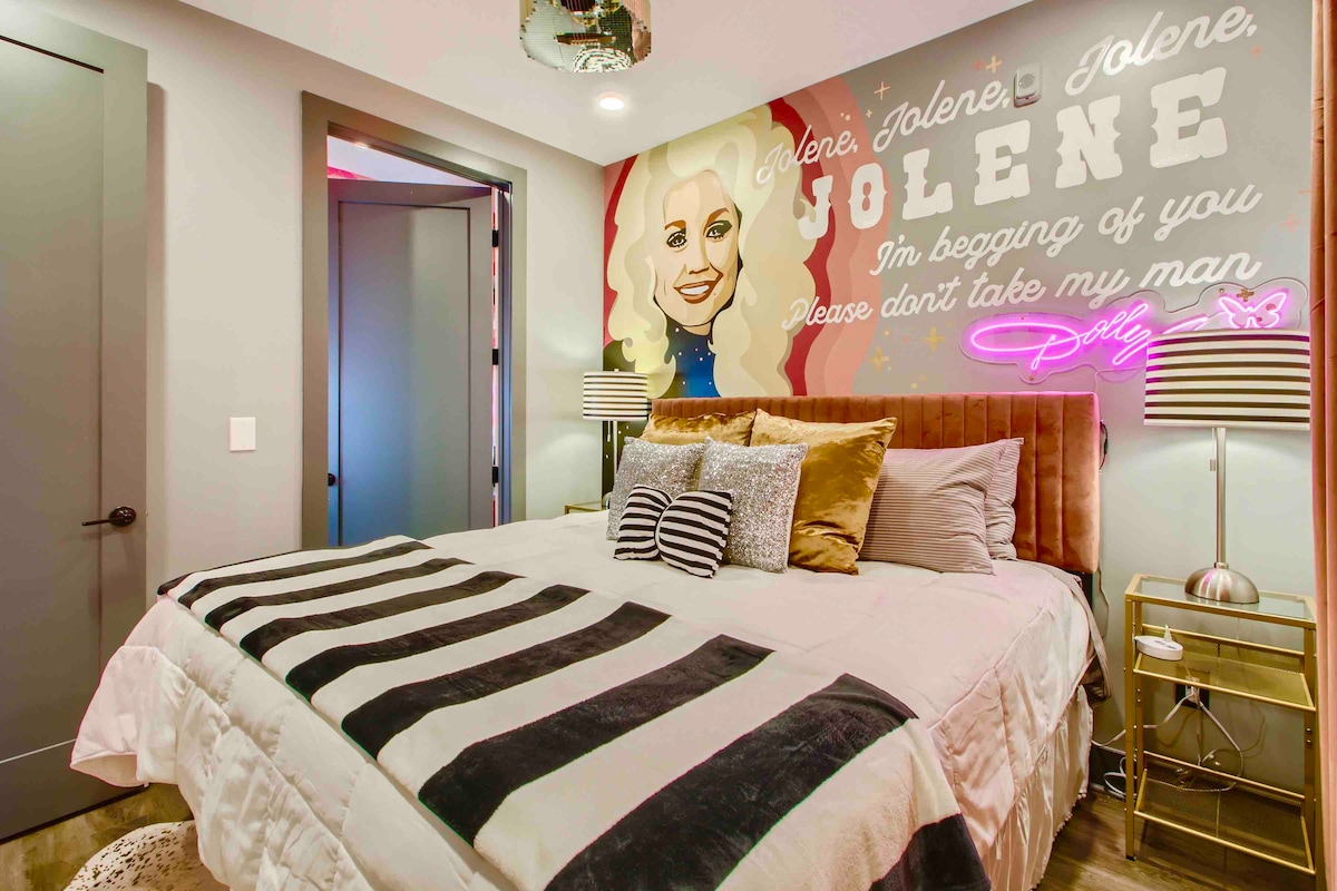 Welcome to the Tall & Skinny, a stylish 4-story retreat with its very own rooftop hangout, just a 5-minute stroll (only 3 blocks) from the Boro’s lively downtown square. Just 2.5 miles off I-24 and only 40 minutes from downtown Nashville, this vertical gem is as convenient as it is unique. Inside you’ll find three themed bedrooms each with its own vibe: 🎀 The Dolly: a little glam, a little southern sparkle 🍸 The Gatsby: moody, luxe, and vintage 🌊 The Nantucket: light, airy, and coastal calm
