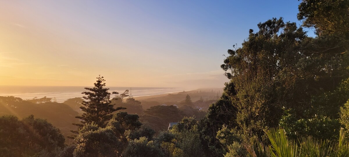 Piha Beach voted Number 1 Best Beach in the World! Stunning 2 bedroom Kiwi Bach experience, set in absolute total privacy. Quite possibly the most spectacular exclusive, private views of South Piha beach. Relax to sound and sight of surf and native bird song, right in front of you, in total peace and quiet surrounded by native bush completely away from neighbours and car park noise. Genuine Kiwi Bach experience, a place to make happy memories.