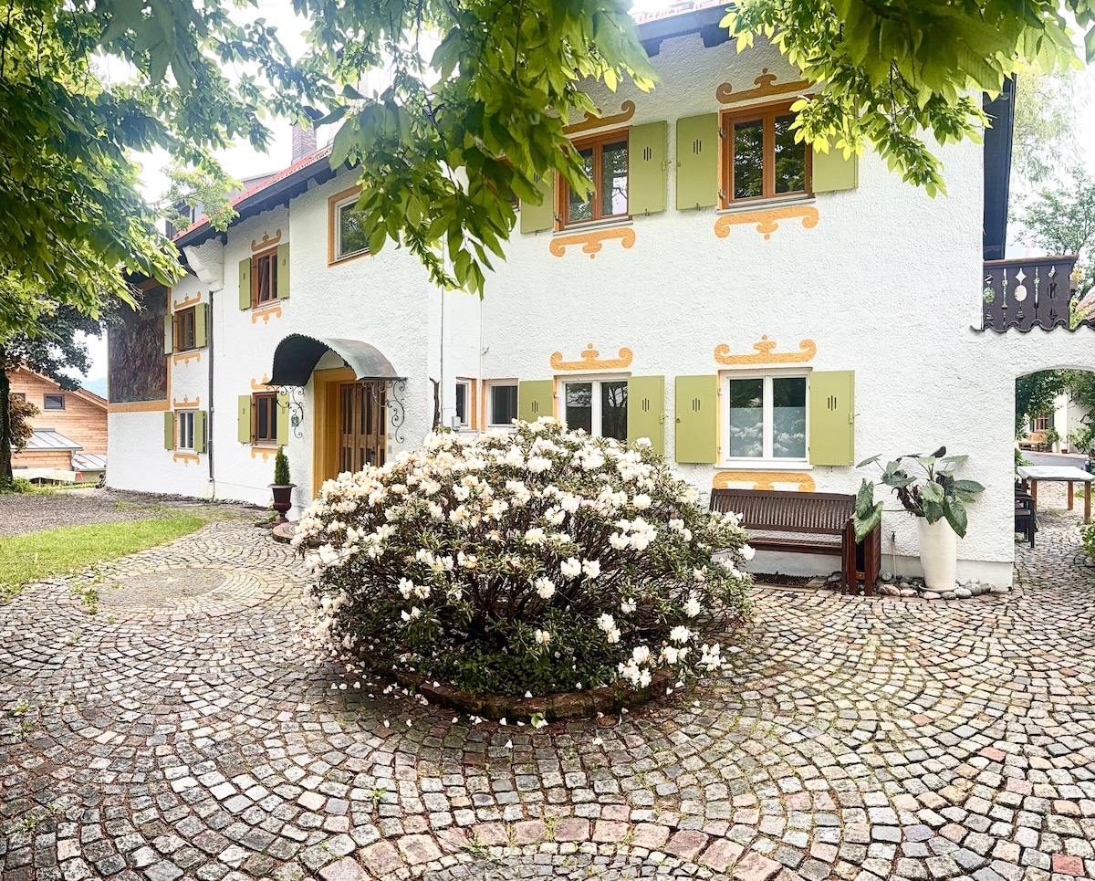 Our 120 year old in nouveau art house is located in the beautiful and astonishing prealpine lands right in between Munich and the famous castles. Our guesthome has a big kitchen with everything you need to cook, two cosy and indivilual bed rooms and a modern bathroom. The living room has a romantic fireplace. The place is perfect for families, couples and friends.