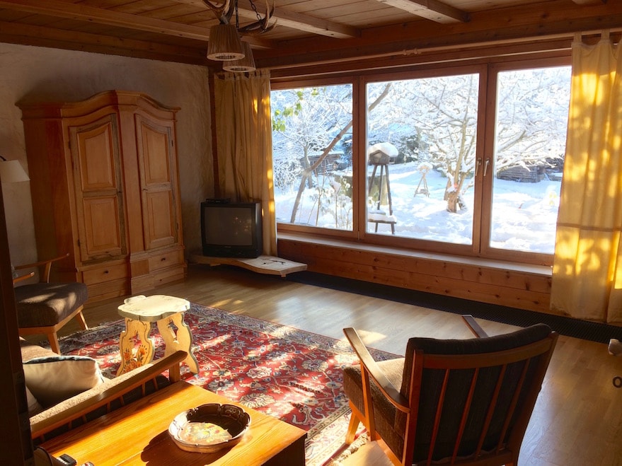 Das Chalet ist ein behaglicher Platz für Paare und Familien und grenzt direkt an unserem alten Haus. Ausstattung: SW-Terrasse mit Gartenzugang, kleine Schlafkammer, großes Schlafzimmer, kleine Küche, holzverkleidetes Wohnzimmer vor Panoramafenster, mit separater runden Essecke ganz in Holz. Ruhige Wohnlage inmitten von Gärten. Nur wenige Gehminuten bis zum Kochelsee, der Schiffsanlegestelle, dem Franz Marc Museum. In direkter Nähe gibt es ein breites Freizeit- und Kulturangebot.