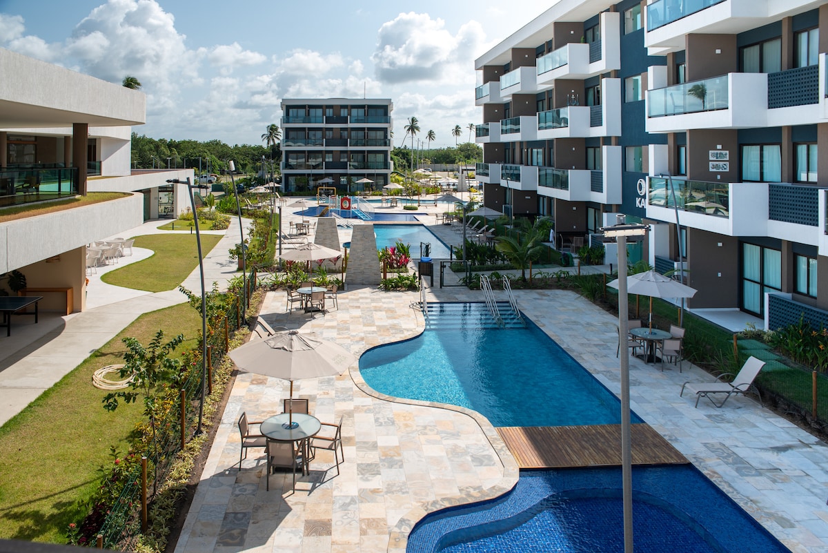 Flat com 1 quarto no resort Cais Eco, arquitetura moderna, piscinas incríveis e sofisticação em cada detalhe. Na beira-mar da Praia do Cupê, em Porto de Galinhas Ideal para casal, família ou grupos pequenos Próximo as praias de rota turística: praia de Muro Alto e Pontal do Cupê, por caminhada leve ou carro A 11 minutos do centrinho de Porto de Galinhas, trajeto fácil e seguro com carro ou Uber A poucos metros de mercado, farmácia e restaurantes. Podendo fazer pedidos via delivery (iFood)