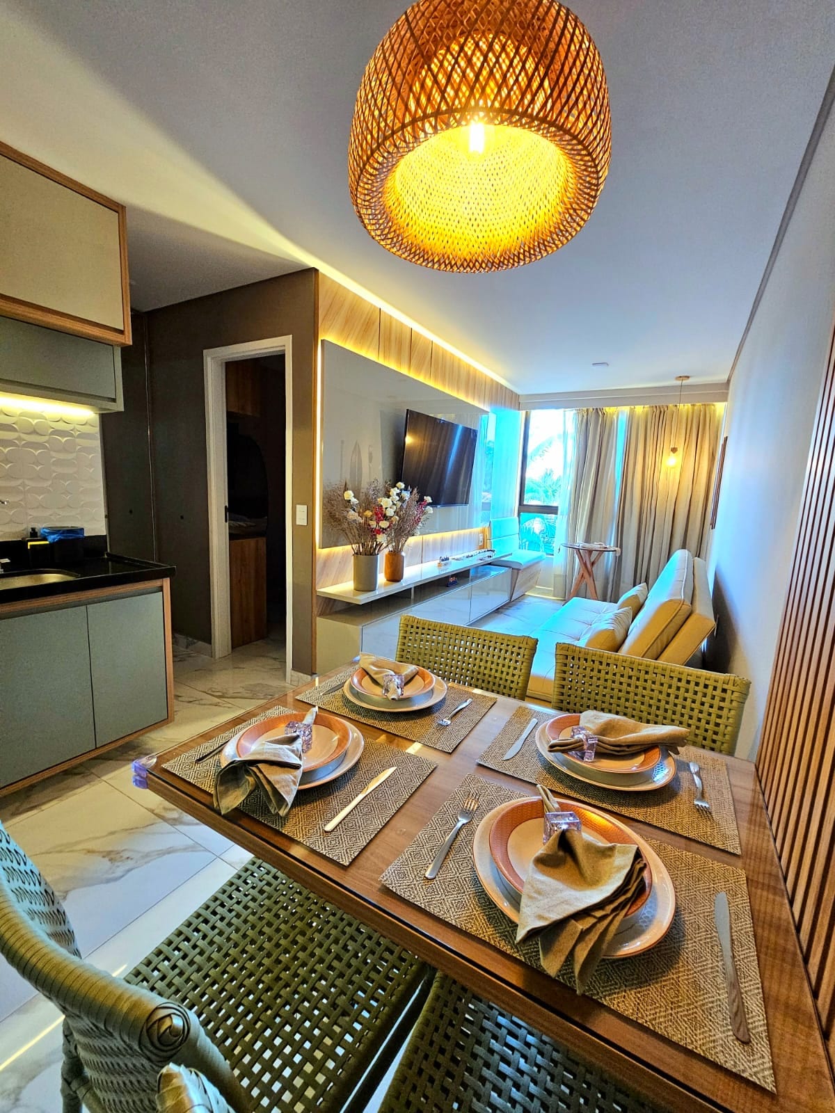 Descubra o prazer de se hospedar em um apartamento completo, moderno e extremamente confortável em Porto de Galinhas. O espaço foi pensado para proporcionar uma experiência acolhedora, com cama confortável, ar-condicionado, iluminação aconchegante e um ambiente elegante para relaxar após um dia de praia.