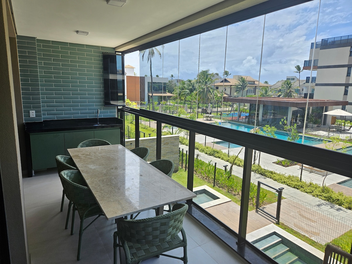 Luxurious flat located in the newest resort of the paradisiacal beach of Muro Alto, the Condominium La Fleur Polynesia. Located on the best and most beautiful stretch of beach, the residential has ample water park with 3,000 m of water mirror, acquaplay, playground, modern elevators, covered parking, tennis and multi-sports court and complete beach structure with chairs and umbrella -Sun.
