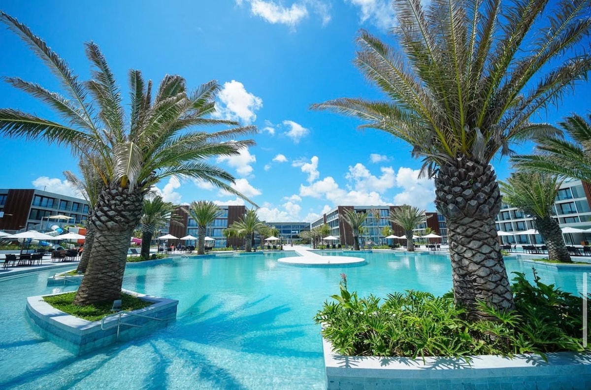 Curta uma experiência luxuosa ao ficar neste lugar especial.quarto com cama de casal e sala com sofá cama pra 2 pessoas,tv e ar condicionado em todos os cômodos,Resort novo e de altíssima qualidade,são várias piscinas para desfrute de sua família,pé na areia com piscinas naturais e passeios incríveis