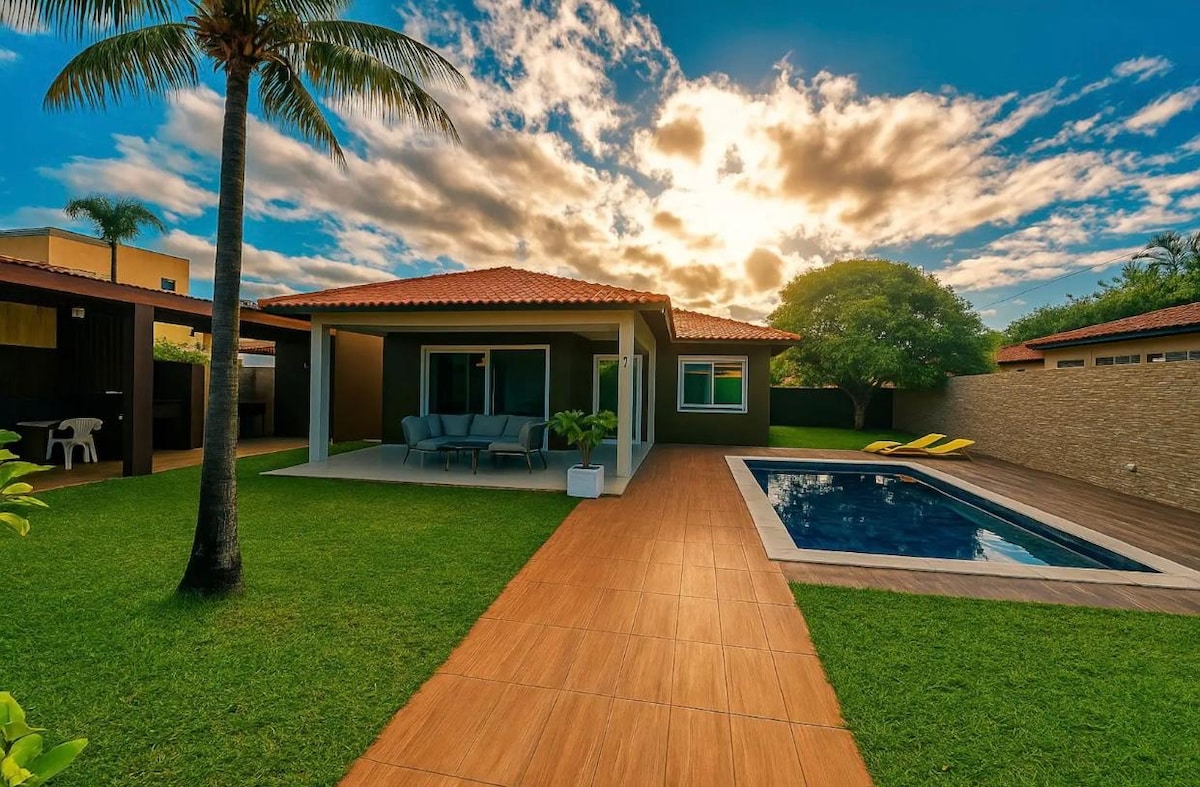 Bangalô a poucos metros do mar, todo mobiliado, projetado para gerar o máximo de conforto e comodidade aos nossos hospedes. Localizado dentro de condomínio beira-mar, com estrutura de resort e segurança 24h. 4 quartos climatizados, ideal para receber até 8 pessoas (Adultos e crianças). Piscina privativa, ar condicionado, wi-fi. Cozinha com todos utensílios. Disponibilizamos roupa de cama e toalhas. Temos a opção de fornecer uma funcionária durante a hospedagem.*