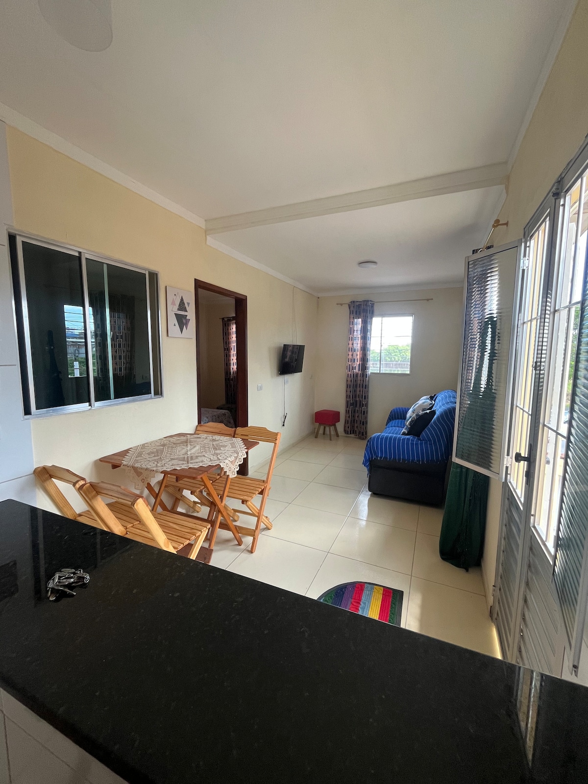 Abrace a simplicidade e o conforto neste apartamento tranquilo e aconchegante, perfeito para casais, com capacidade para até 4 pessoas (cama de casal e sofá-cama disponíveis). Localizado próximo à praia, oferece ar-condicionado, Wi-Fi de 600 Mbps e Smart TV para sua comodidade. O condomínio conta com piscina e uma vista incrível para o pôr do sol. Fica a poucos passos de padarias, farmácias, mercadinhos, pizzarias e restaurantes. Tudo para tornar sua estadia ainda mais prática e agradável!
