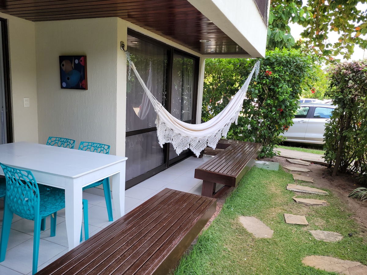 Spacious 65sqm ground floor apartment, fully equipped, on the seafront, inside the Ancorar Resort with: ✔1 suite ✔Large balcony facing the sea ✔2 large swimming pools with bar and restaurant ✔Tennis, Beach Volleyball and Sports courts ✔Playground, Toy Library and Games Room ✔Gym ✔Mini market (with breakfast aside) ✔ Natural pools and downtown are 2.5 km away (by the beach or boardwalk) ✔ Taxi (24h), bike path and bus stop in front of the resort.
