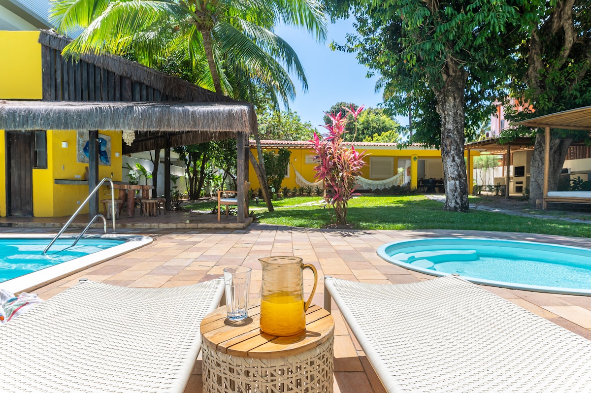 Center of Porto de Galinhas, best stretch of beach! Just a two-minute walk to the sea and a five-minute walk to the natural pools. Free parking! We accommodate to 13 people. Families with children and elderly people also love our space, all on the ground floor! PET FRIENDLY, subject to prior consultation. Space for remote work! Wi-Fi! Unique space in Porto de Galinhas! Nature embraces you, transmits peace, privacy, close to the sea, and we offer all the comfort so you feel at home!